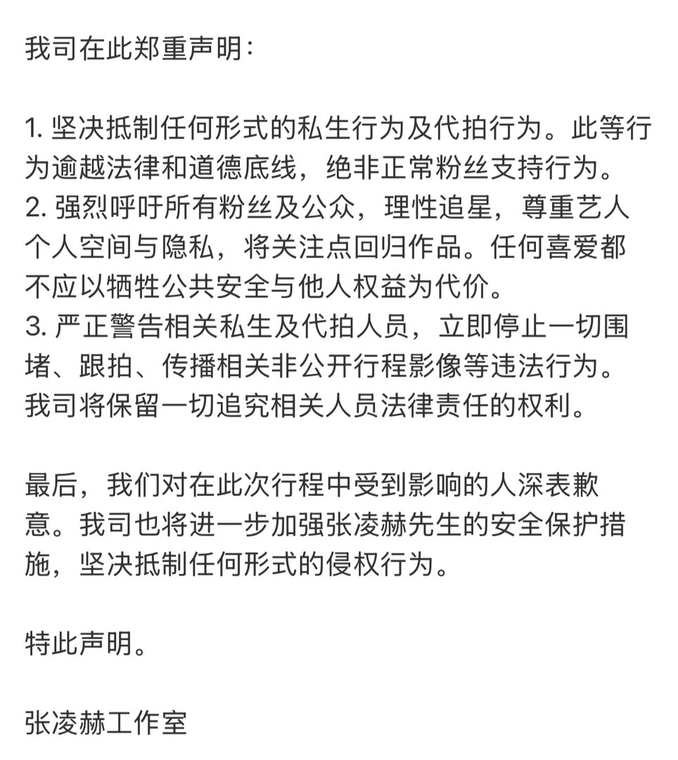 张凌赫工作室发布声明:坚决抵制ss和dp❗