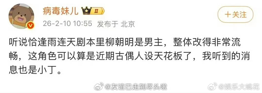 丁禹兮周也恰逢雨连天网传丁禹兮周也主演恰逢雨连天《恰逢雨连天》 从三月初开始传🫓,女主换来换去,从卢昱晓到白鹿到现在的周也。唯一确认的是定男选女~