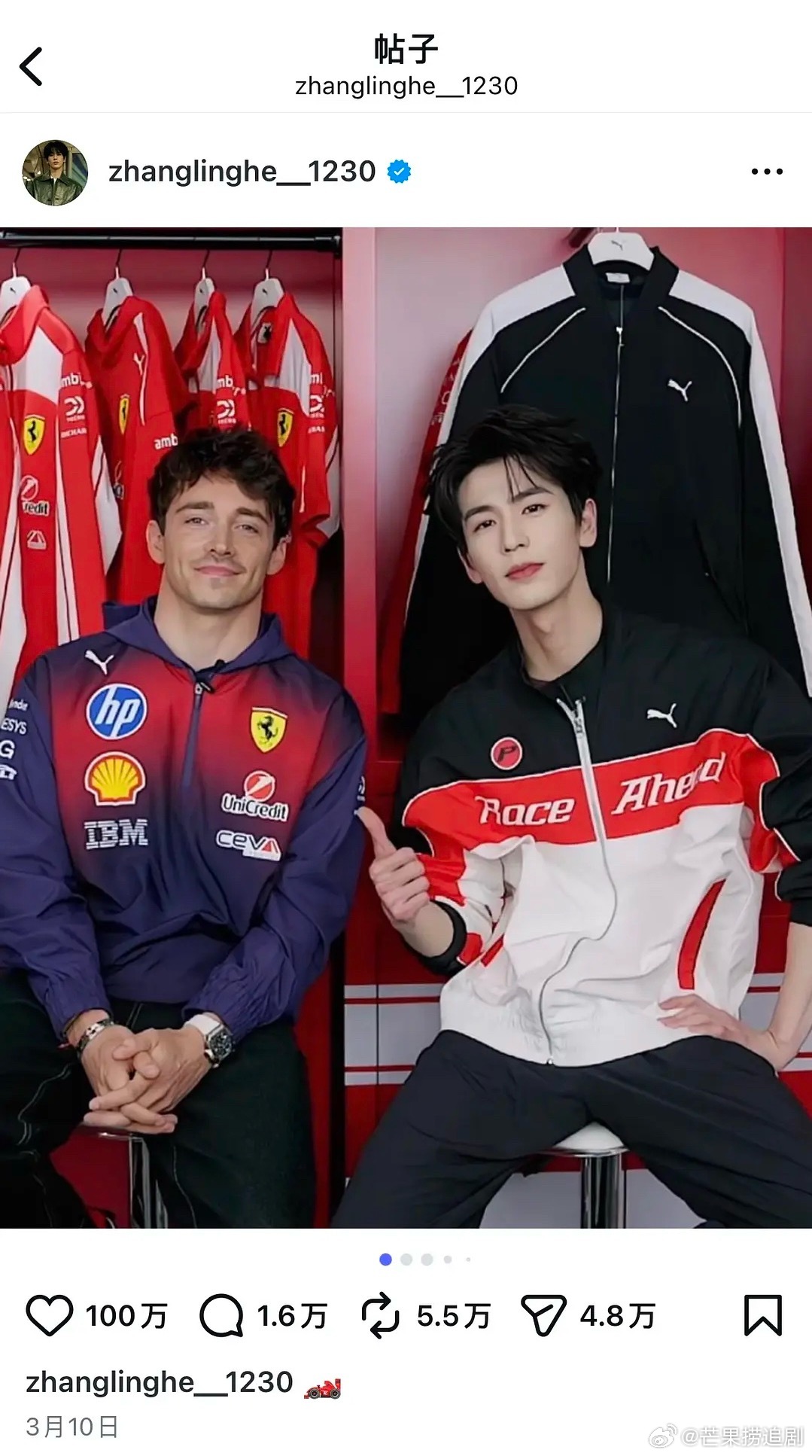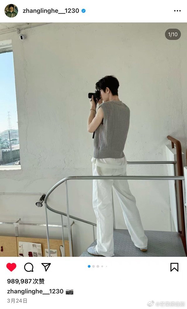 去年三月《爱你》到今年三月《逐玉》,张凌赫短短一年INS涨粉三百万,百万赞已经有两条即将解锁第三条。