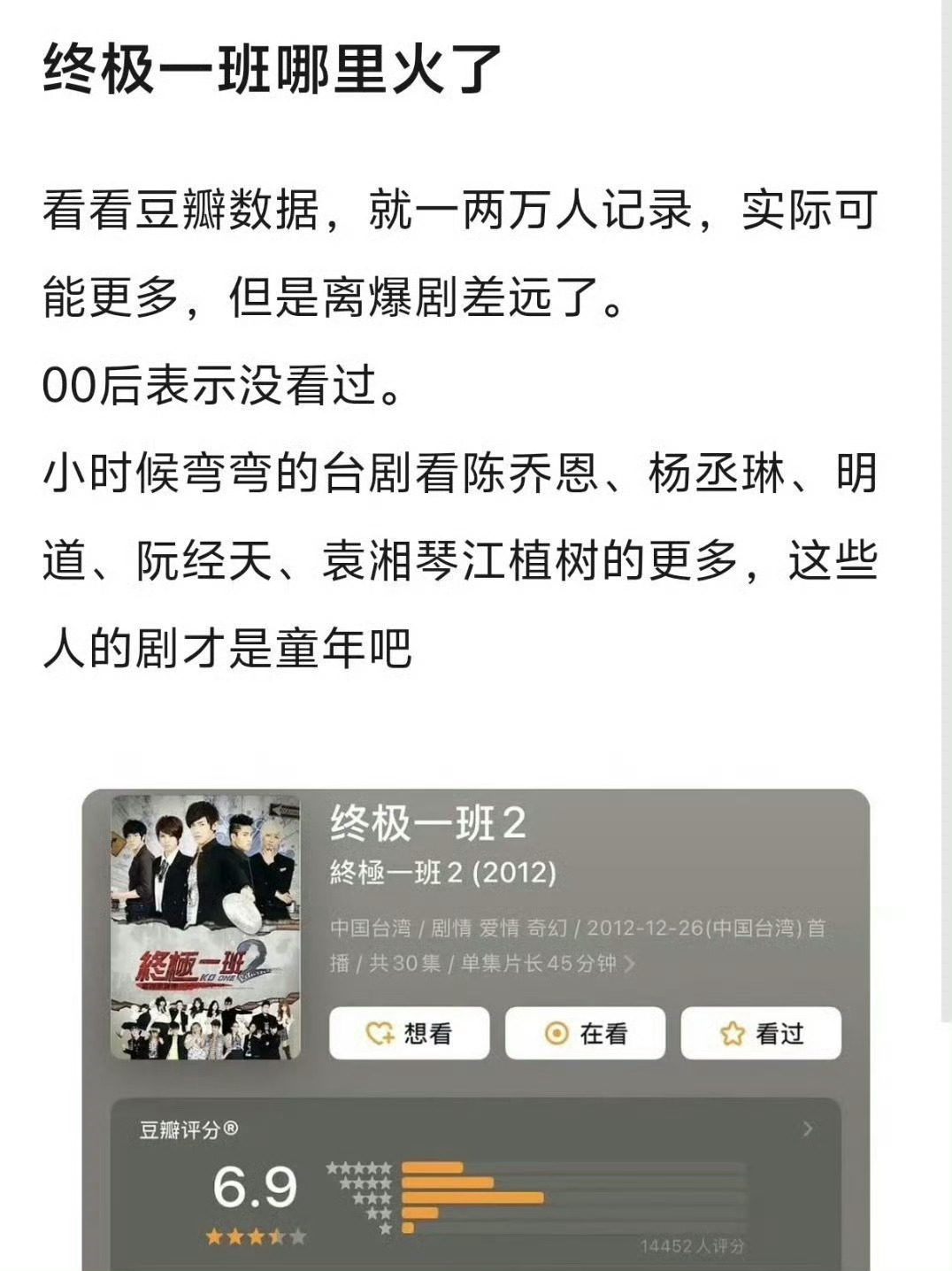 今日热议,《终极一班》是台偶大爆剧吗?曾沛慈到底是大营销,还是真的童年回忆?