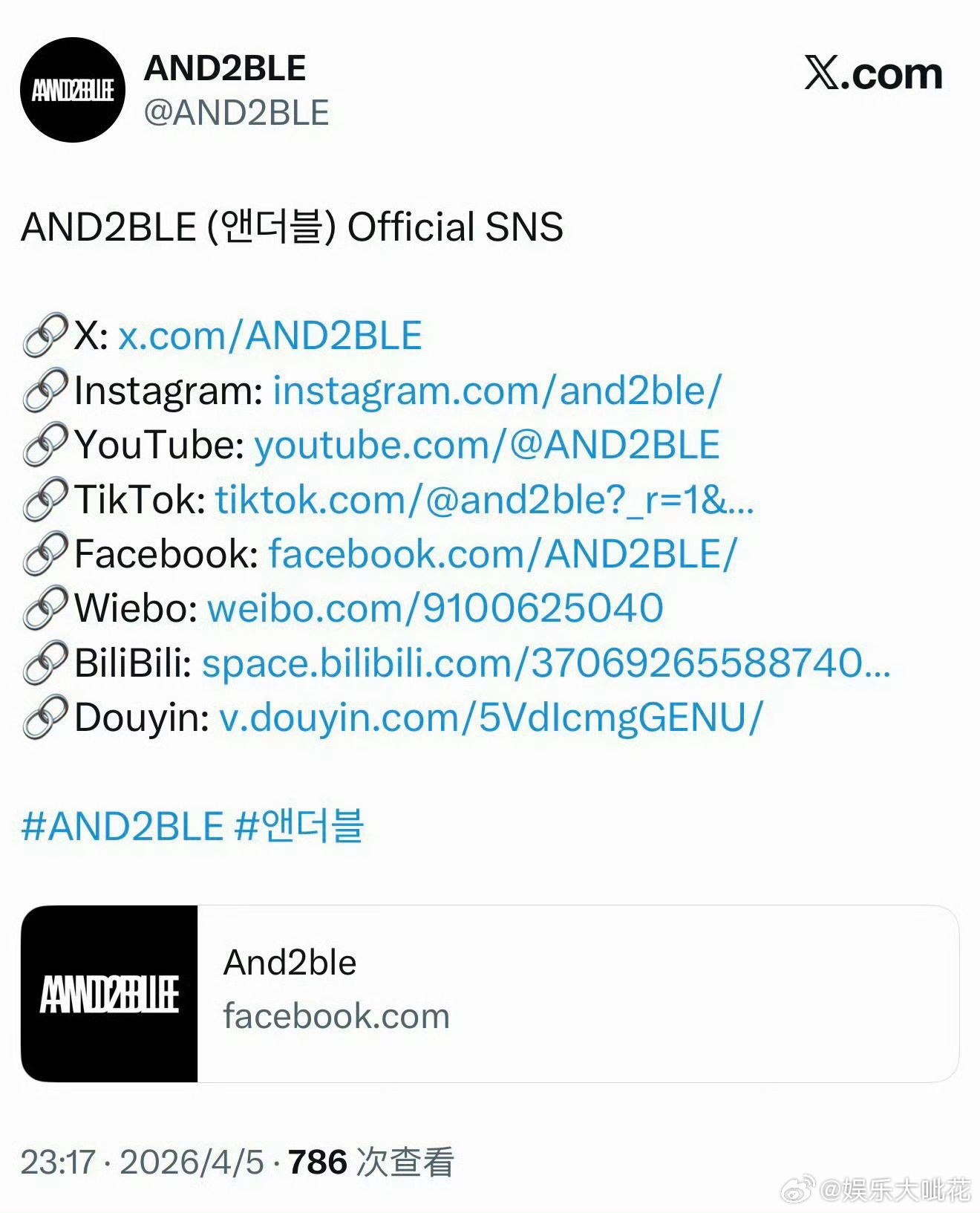 and2ble各平台账号已开通乐华新男团and2ble开通各平台账号 乐华新男团