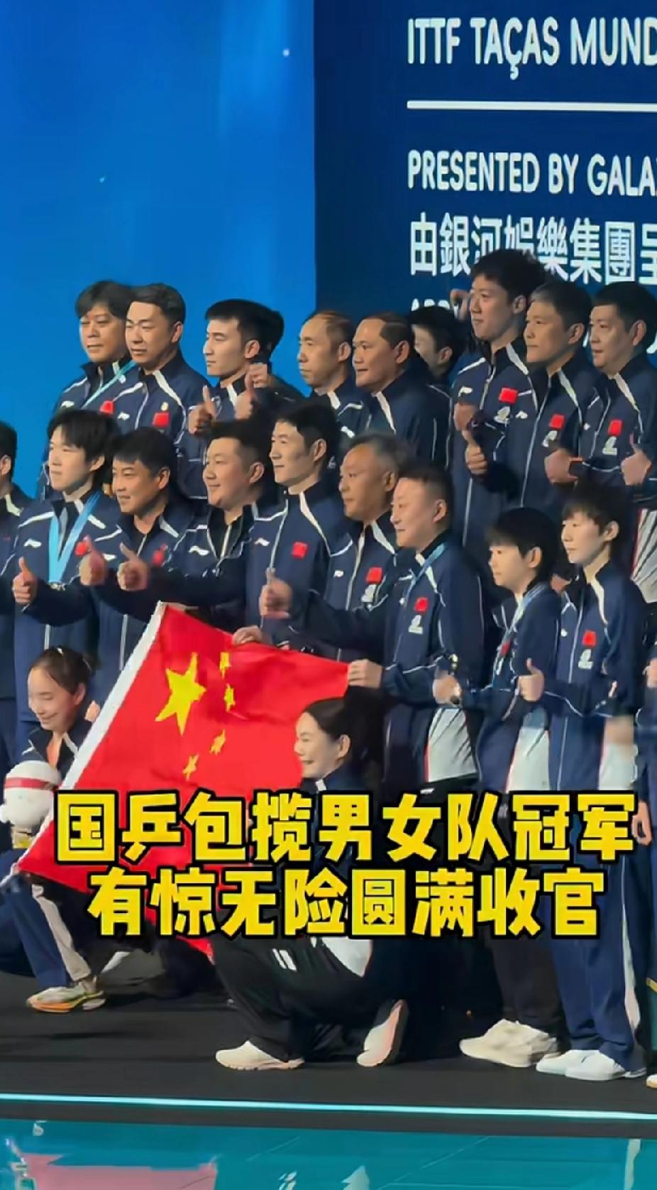 澳门世界杯封神!莎头相视一笑,国乒全员荣耀同框😭 谁懂啊家人们!2026澳门乒乓球世界杯,国乒包揽男女单打冠军,这组画面直接看哭! 赛后大合影时,大头蹲在那儿,看见莎莎走过来,立刻笑着起身,两人相视一笑的瞬间,所有的汗水、拼搏、陪伴,都藏在这一笑里了。从年少并肩到如今双双登顶,他们真的把“顶峰相见”变成了现实! 再看大合照,全队身着统一队服,簇拥着五星红旗,每一张笑脸都写满了胜利的喜悦。从教练团队到队员,从莎头到每一位为国拼搏的国乒人,这就是中国乒乓的传承与实力! 今晚注定是不眠之夜,你们开心,我们就开心!冠军属于国乒,属于每一个热爱乒乓的人!🇨🇳 孙颖莎 王楚钦 莎头组合 澳门乒乓球世界杯 国乒yyds