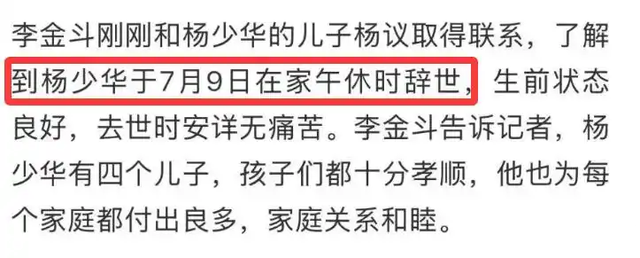 现在关于杨少华离世的具体情形,至今存在两个版本。