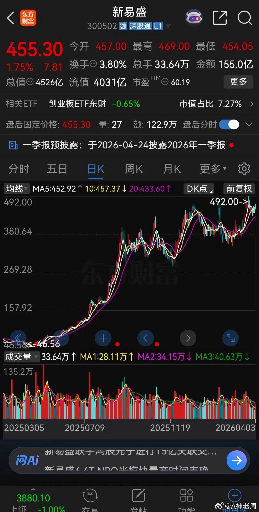 这轮股市大跌,CPO、光模块几乎没跌,以新易盛、中际旭创、天孚通信,就是大家常说的“易中天”,以及宁德时代,胜宏科技等几百元的高价股,在大盘连续下跌的情况下,非常坚挺,形成极致的抱团,而每天股市四五千家下跌却成了常态。