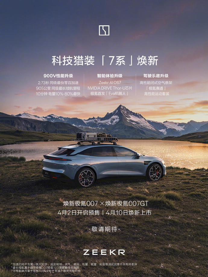 极氪焕新 007/007GT 及 001 五周年纪念版即将开启预售与上市。新车全面升级 900V 高压架构,搭载更强智驾芯片,续航最高 905 公里,百公里加速最快 2.73 秒。001 纪念版更以限量形式发售,拥有 925 匹马力及「星空音乐厅」座舱。