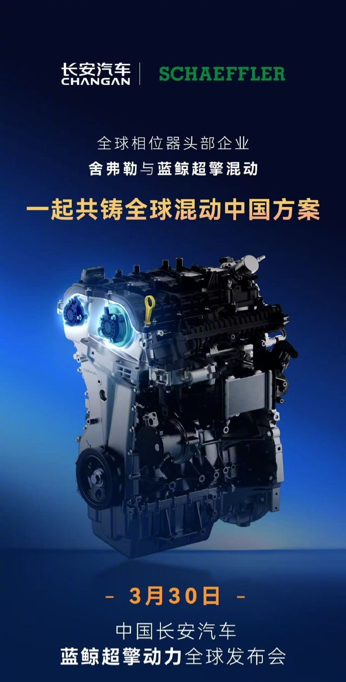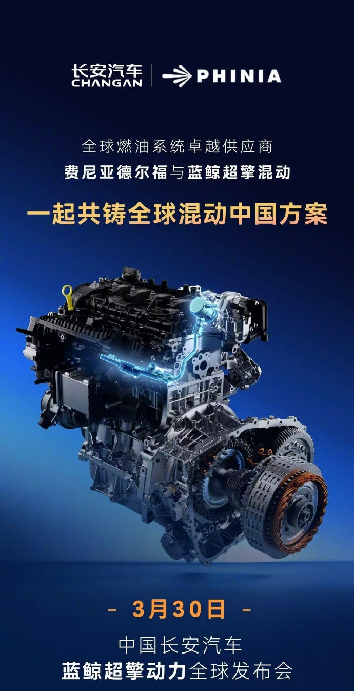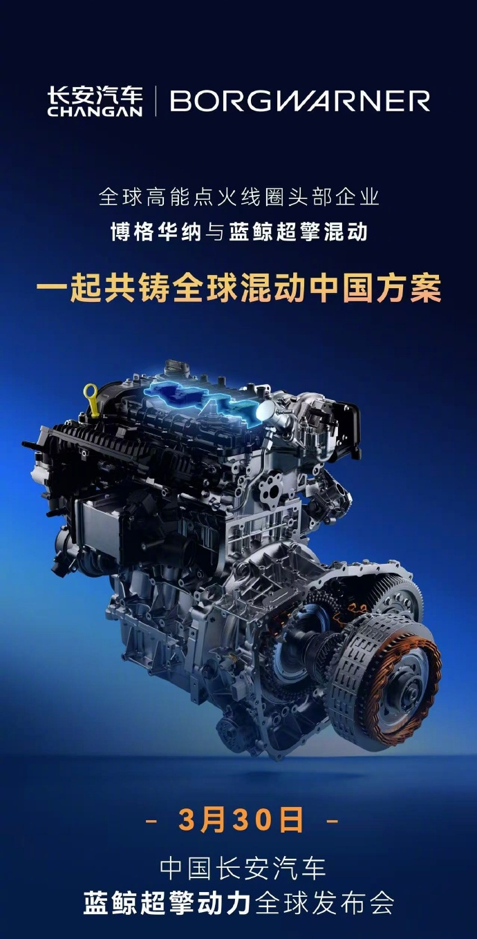 【城区油耗号称进入百公里 2L 时代,长安新一代蓝鲸超擎混动今晚发布】今天上午,长安汽车通过官微宣布,3 月 30 日 19:30(今晚),长安汽车蓝鲸超擎动力全球发布,城区油耗进入 2L 时代。