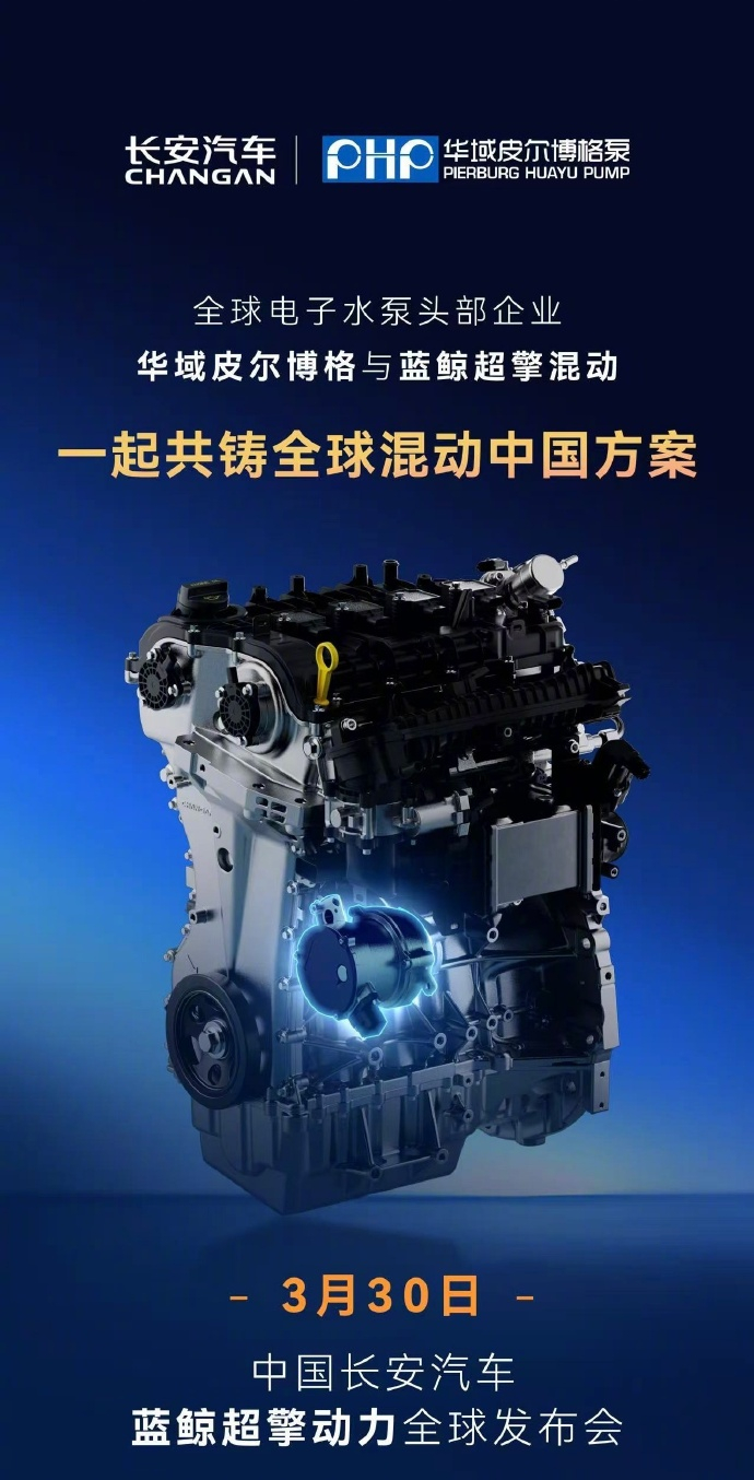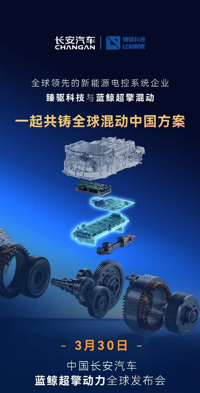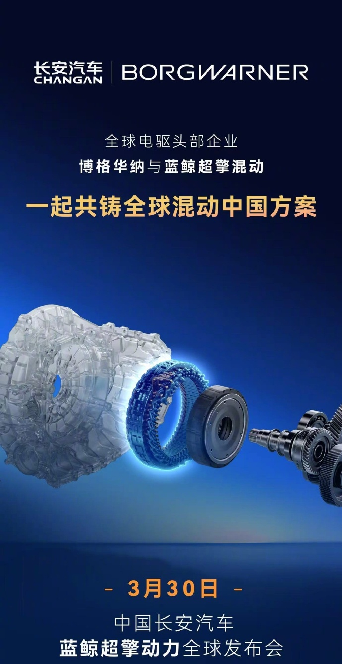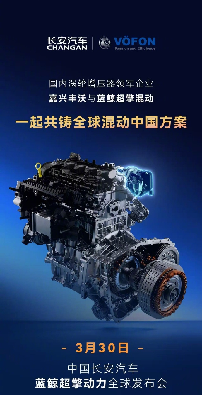 【城区油耗号称进入百公里 2L 时代,长安新一代蓝鲸超擎混动今晚发布】今天上午,长安汽车通过官微宣布,3 月 30 日 19:30(今晚),长安汽车蓝鲸超擎动力全球发布,城区油耗进入 2L 时代。