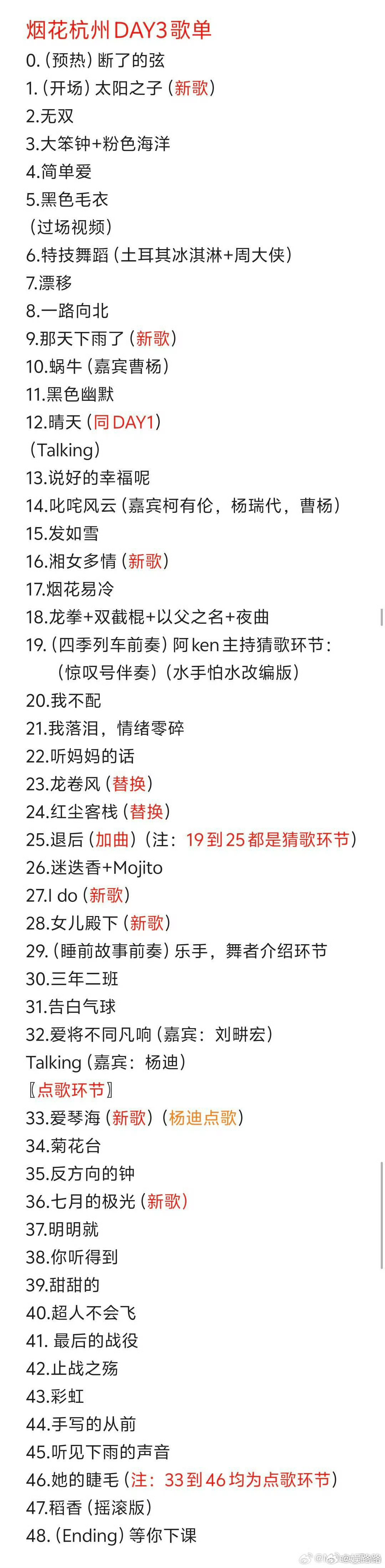 尾场直接给了所有人惊喜!!点歌环节直接唱了14-15首!!什么《反方向的钟》《止战之殇》《彩虹》《淘金小镇》都唱了,连唱快1小时,观众都喊“赢麻了”!!连杨迪都来现场点歌了!!整场唱到10点之后,比前两场晚了快1个小时,算下来实唱超2.5小时!!
