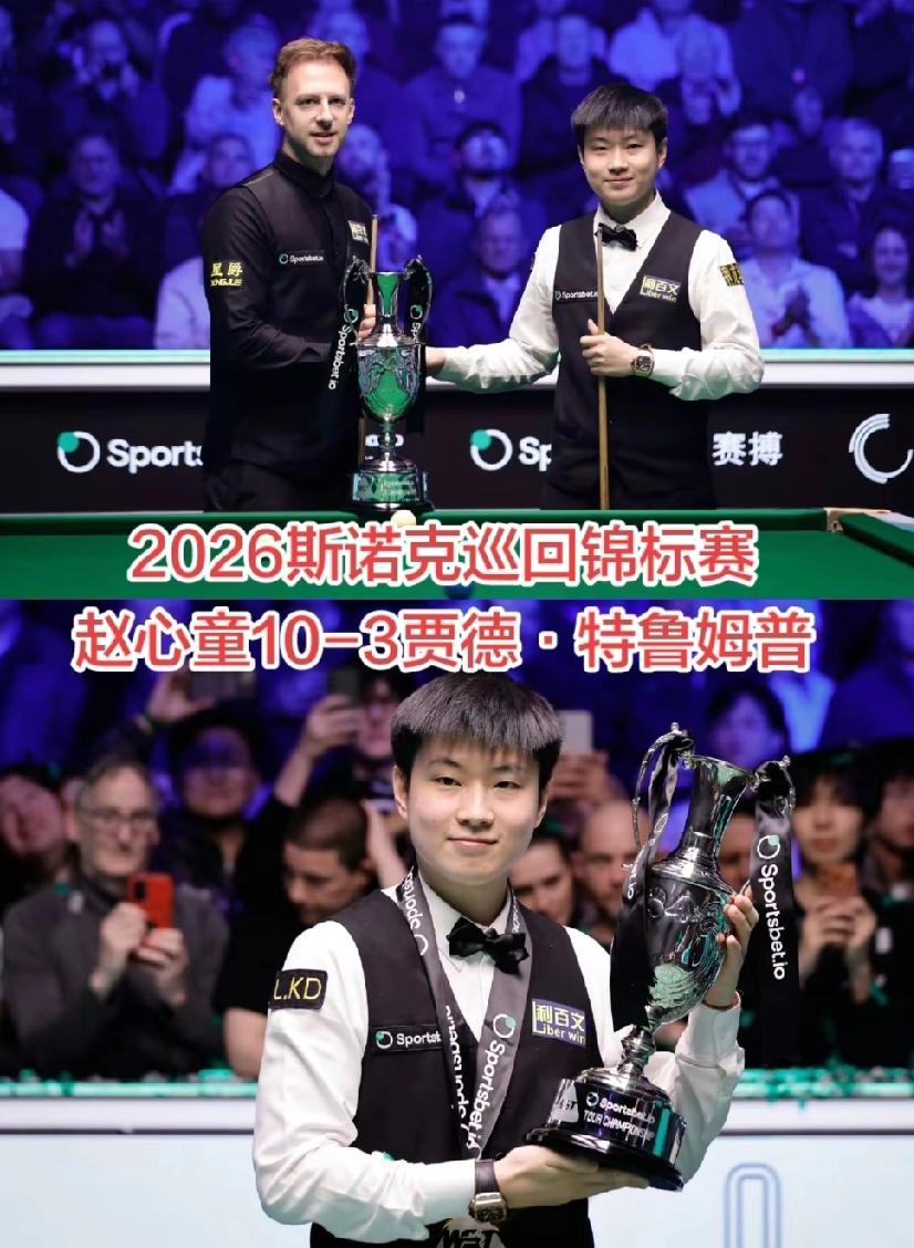 不瞒你说!这几天,感觉赵心童就是在打游戏,带自动瞄准镜一样的神准。 七进决赛,七夺冠军,100%问鼎概率,赵心童职业生涯决赛大盘点: 1、2021英锦赛:赵心童10-5布雷塞尔。 2、2022德国大师赛:赵心童9-0颜丙涛 3、2025世锦赛:赵心童18-12威廉姆斯。 4、2025利雅得锦标赛:赵心童5-2罗伯逊。 5、2026世界大奖赛:赵心童10-6张安达。 6、2026球员锦标赛:赵心童10-7希金斯。 7、2026巡回锦标赛:赵心童10-3特鲁姆普。 风轻云淡,抬扞就有,这个赵公子,远比我想象的优秀!