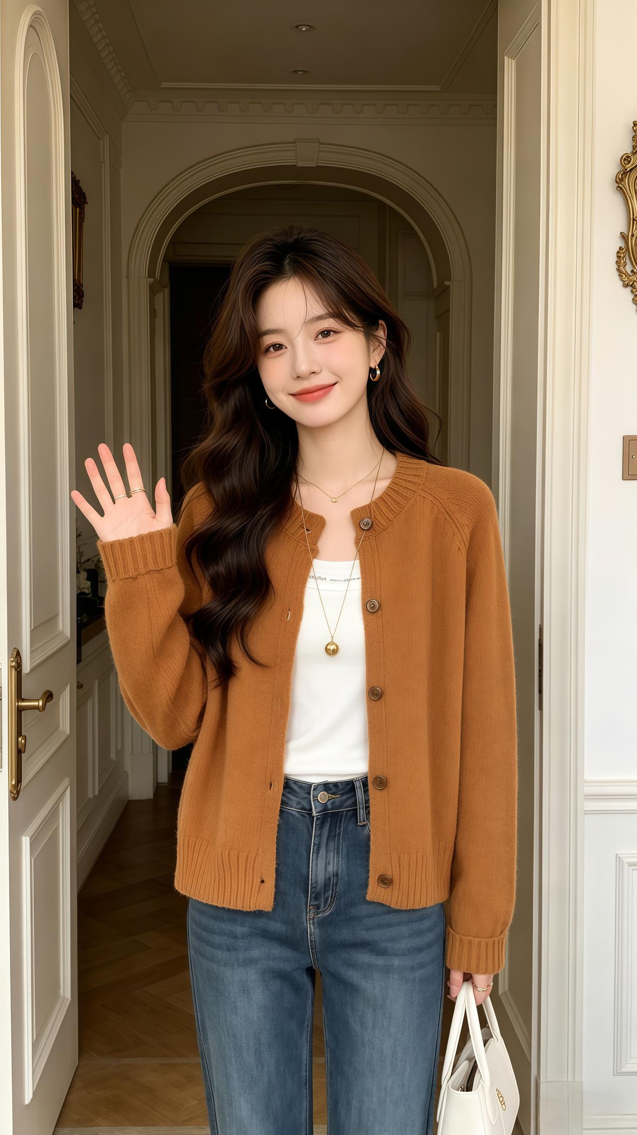 软糯小开衫 温柔针织小开衫 慵懒风短款开衫 穿搭韩系穿搭