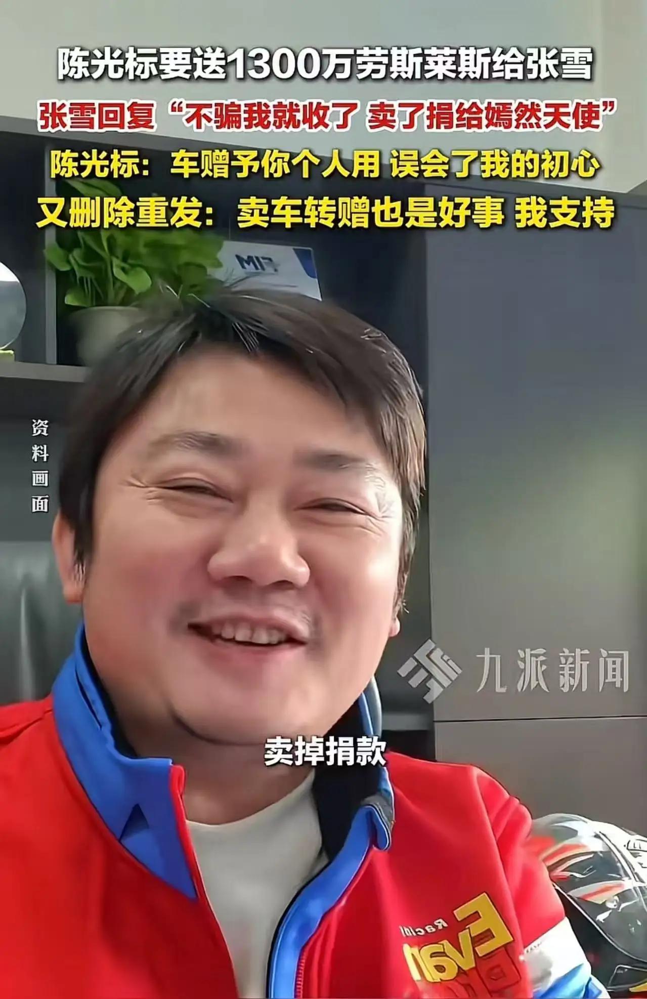 陈光标又让人意外了! 言出必行!已将劳斯莱斯变现1000万元捐给嫣然医院! 4月5日,陈光标在社交平台发布视频,语气平静却掷地有声:“鉴于张雪先生迟迟未来见面提车,现在我充分尊重张先生的意愿,特此前来将车辆变现的资金捐赠给嫣然医院。” 消息一出,全网瞬间炸开了锅,原本吵得沸沸扬扬的赠车风波,一夜之间迎来暖心大反转,让无数质疑的网友纷纷闭上了嘴。回溯整件事的来龙去脉,才发现这场热度满满的网络热议,藏着最朴素的善意与格局,也道尽了慈善最本真的模样。 事情还要从4月1日说起,陈光标公开宣布要赠送一台价值1300万的劳斯莱斯给机车达人张雪。之所以送出天价豪车,只因张雪带着中国机车征战世界顶级赛场,接连斩获两项冠军,为国争光撑起了国产机车的脸面,这份拼搏与爱国情怀深深打动了陈光标。一时间,全网羡慕不已,都感慨英雄配厚礼,实至名归。 可谁也没料到,张雪的回应格局直接拉满。他大方接受这份心意,却直言自己团队平日里接待客户还在用面包车,根本用不上奢华豪车,打算把这辆劳斯莱斯八折转手卖掉,所得钱款一分不留,全部捐赠给嫣然天使基金,助力唇腭裂儿童救助事业。 这个暖心表态刚发出,舆论立马分裂成两大阵营。有人疯狂夸赞张雪淡泊名利,把个人荣誉化作公益暖流,格局远超常人;也有人揪着细节开始猜忌,更有不少网友翻出陈光标过往高调行善的种种争议,直言他又是借着赠车炒作蹭流量,搞表面功夫的慈善秀,画大饼博眼球根本不会真兑现承诺。 起初陈光标也曾流露过自己的初衷,他本意是想用豪车嘉奖张雪的奋斗精神与家国担当,希望对方自用珍藏荣光。但看着张雪一心向善、心系患儿的赤诚之心,他没有固执己见,反而选择全盘尊重对方的善意选择。眼看约定时间过去,张雪始终没有前来提车碰面,陈光标干脆利落做出硬核决定:不纠结赠车的初衷形式,直接将豪车快速变现。 紧接着,他当众晒出清晰完整的银行转账凭证,整整1000万元善款稳稳打入北京市朝阳区嫣然天使儿童医院账户,专款专用用于医院基础建设,全程公开透明,每一笔流向都摆在阳光下,没有半点含糊敷衍。真金白银的捐款落地,狠狠击碎了所有“作秀炒作”的流言蜚语。 其实这么多年,陈光标一直游走在舆论的风口浪尖。有人诟病他行善太高调,排场隆重喜欢大声宣扬,少了慈善该有的低调内敛;也有人始终认可他,纵使风格张扬,却从来都是言行合一,出钱出力从不打嘴仗,实实在在拿出真金白银帮扶弱势群体。我们不得不承认,世间行善从没有统一的模板,低调默默奉献值得敬佩,高调坦荡捐输同样不该被恶意抹黑。 反观这场双向奔赴的温柔,张雪身披荣光却不贪恋奢华富贵,把嘉奖转化为救助孩童的希望;陈光标放下固有执念,顺势成全两份善意,让天价豪车最终蜕变成守护弱小的爱心桥梁。两个人互不勉强、彼此成全,让一场网红热度闹剧,升华成温暖全城的公益佳话。 嫣然医院常年专注救助贫困家庭的唇腭裂患儿,无数折翼小天使在这里重展笑颜,这笔千万善款的注入,无疑能为医院扩容升级、帮扶更多困难孩子添砖加瓦,这份善意实实在在落到了最需要的地方。 人性从来复杂,我们不必苛求每一份善意都完美无瑕,也别带着偏见轻易否定他人的付出。比起纠结行善的姿态高低,能真真切切掏钱做事、帮扶众生,才是慈善最珍贵的内核。 这场轰轰烈烈的豪车风波圆满落幕,没有算计炒作,只有双向向善。那么屏幕前的你,觉得高调行善该不该被包容?你认可陈光标和张雪这份成全式善意吗?快来评论区聊聊你的真实看法吧! 陈光老师 陈光亮 陈光烈 陈光全 陈光将 陈光斌 陈光旭