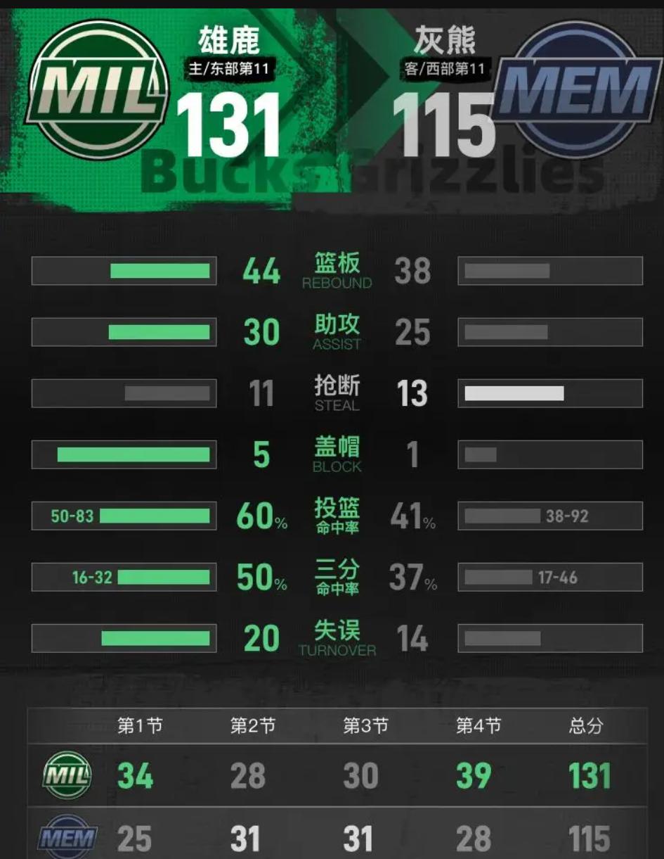 哎!我看完这场球,第一感觉不是雄鹿多牛,是心疼。 131-115看着像血洗?呸!这是两支球队互相揭伤疤的表演赛。字母哥西装革履坐场边,莫兰特在家养伤,俩巨星把舞台腾出来,结果站上C位的不是顶薪大爷,是拿双向合同的"临时工"。 先说雄鹿这边。罗林斯,发展联盟刚爬回来,24分扔得比明星还狠,16投10中;瑞安,21分附赠5个抢断,这哥们儿上赛季还在擦饮水机;普林斯那两记止血三分,您看见灰熊教练脸绿了吗?这叫什么?这叫"去巨星化"的野球美学,比字母哥一人冲四个治愈多了——原来没有超巨托底,篮球还能这么玩,还能靠6人上双赢。 可灰熊那边,吕佩尔那33+10+10,您别急着填"刷数据"。正负值-12是寒碜,可您换谁带这支残阵灰熊能正?19投9中,罚球16中13,这孩子从开拓者差点被骂退役,到今天孤军奋战,这哪是刷?这是求生欲! 事儿邪性就在这:雄鹿赢了球却埋着雷——没了字母,靠替补狂欢硬撑,季后赛这么玩就是送人头;灰熊输了球却瞅见一束光——吕佩尔证明了自己不是废柴,重建三年总算有个活物。 篮球最治愈的,不是超巨飞天遁地,而是当聚光灯全灭,罗林斯和吕佩尔这种"被遗忘的人",硬生生把职业生涯从垃圾桶里捡回来。雄鹿球迷今晚该笑,但别忘了——今天的狂欢,是巨星缺席的无奈;灰熊球迷该哭,但请记得——那双拼命的手,还没凉。 这比赛告诉我们:没有真正的配角,只有还没遇到剧本的主角。雄鹿大胜灰熊