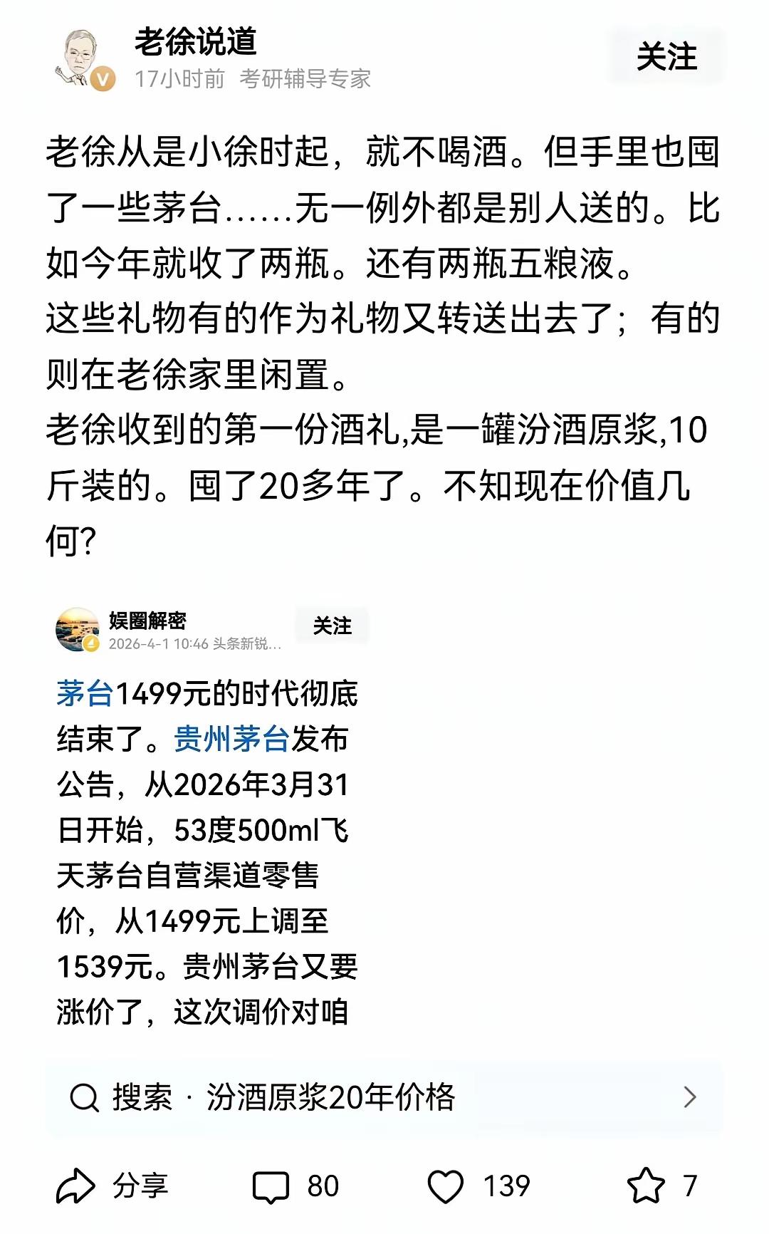 这些人一边吹捧西方没有人情世故,羡慕得很,一边却以身作则喜欢得很人情世故。人情往来,收“礼”拿东西,居然还自曝了!“难怪”会被说成“无知者无畏”。 很奇怪的是,既然他们那么讨厌“人情世故”这一套,为啥还这么津津乐道收到那么多茅台、汾酒原浆酒呢?并且还特地强调自己不喝酒呢?