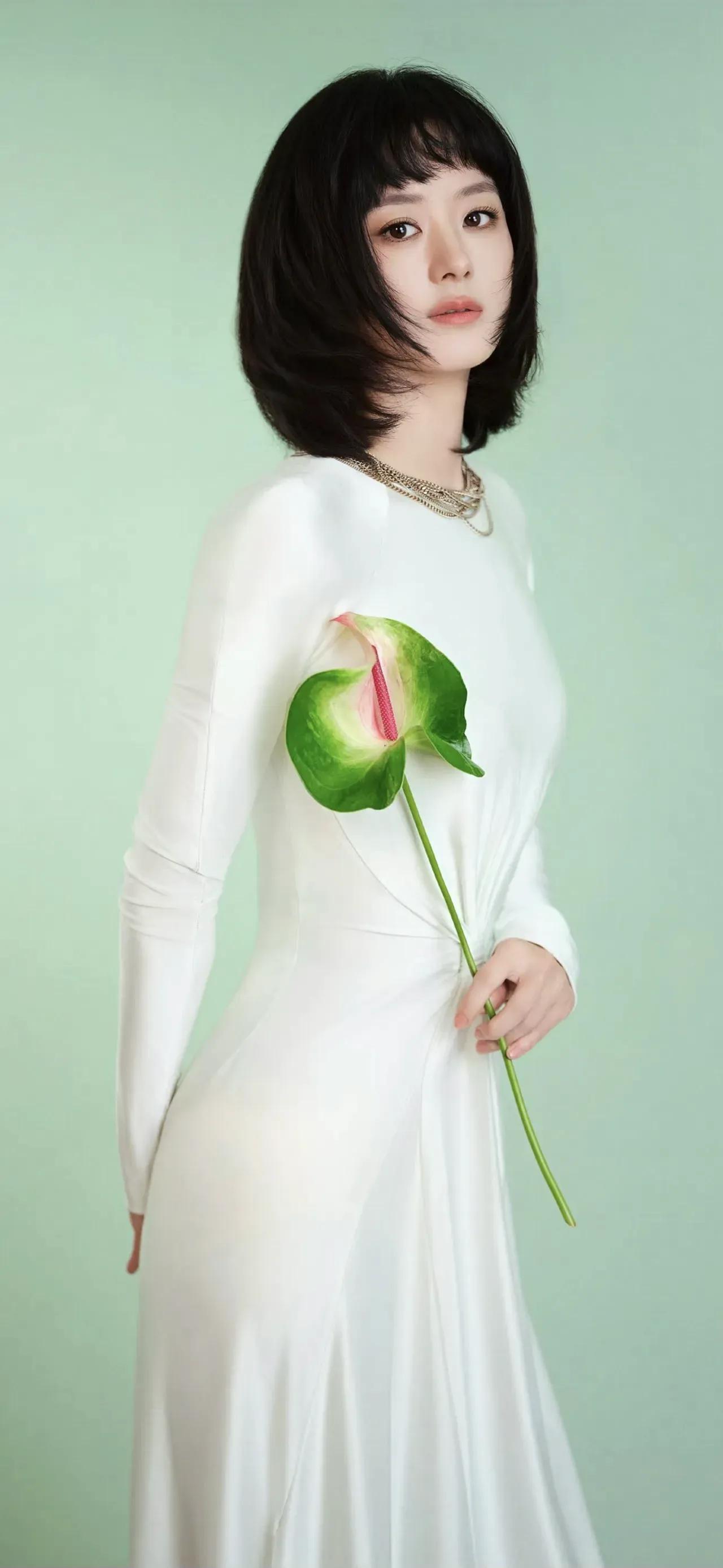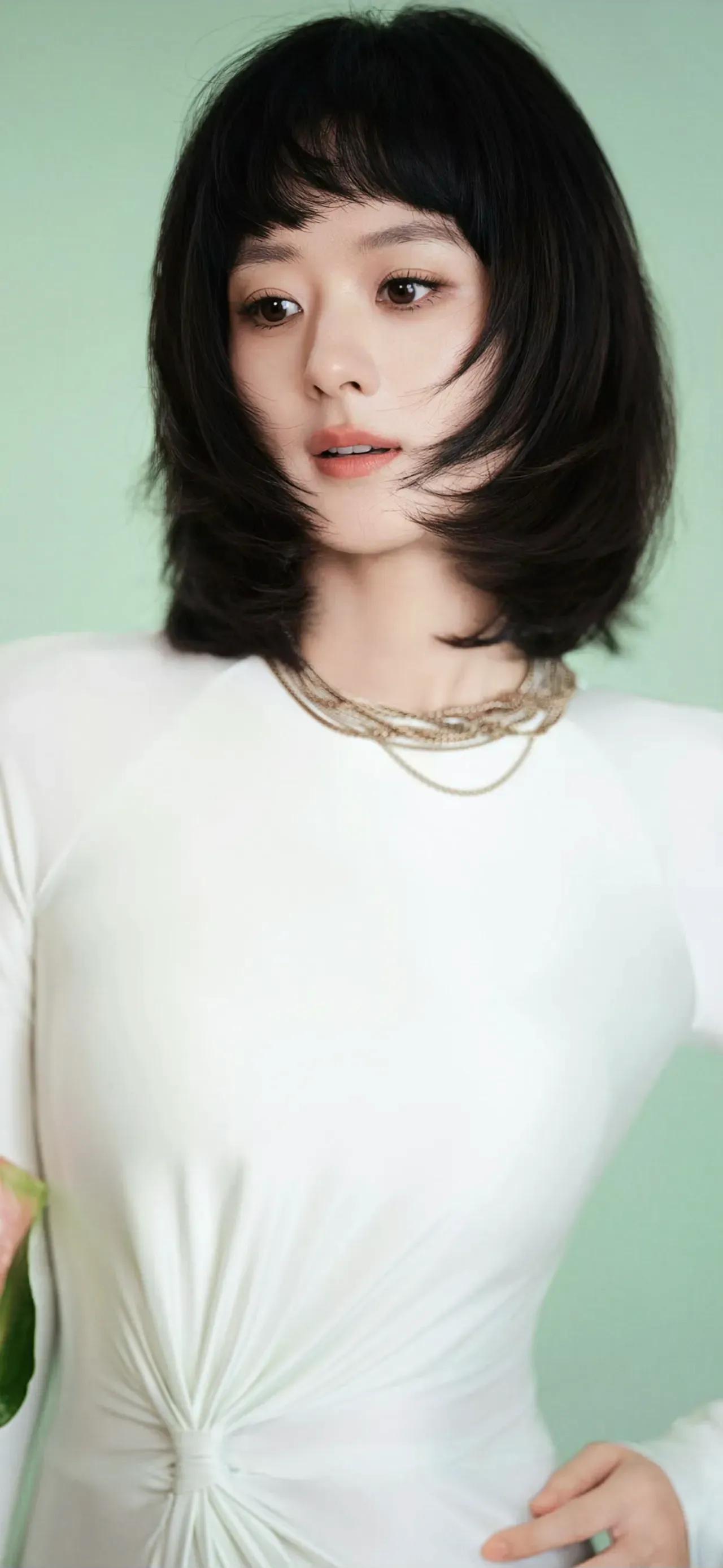 薄荷绿的底色里,白裙漾开温柔的涟漪。 利落短发衬出灵动眉眼,金链点缀出飒爽气场, 一颦一笑间,是松弛与优雅的完美碰撞, 是岁月沉淀后,愈发鲜活的赵丽颖。