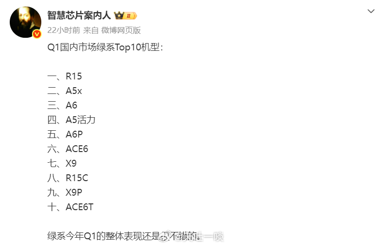 看看小米、荣耀、OPPO、vivo在Q1各自单品销量Top10