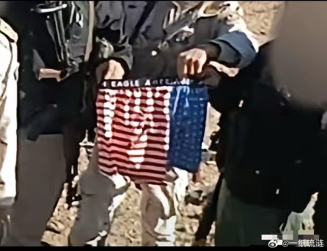 人虽然被救走了,但是缴获了印有星条旗的大裤衩子。民兵展示战利品,告诉世人俺们赢麻了,打的老美连底裤都没了。有点整不明白,美国大兵留条大裤衩子,是什么意思?当然是告诉人们,瞧瞧,为救一个人,老美连大裤衩子都赔没了。