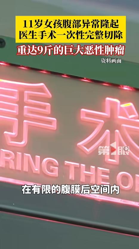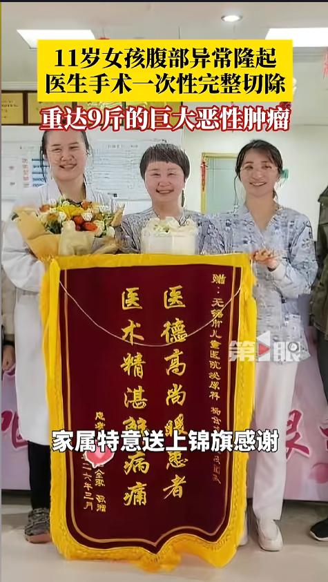 “万万没想到!”近日,一女孩被老师发现,腹部有一个异常的凸起,在老师的强烈建议下,家长带孩子去医院做了检查,这一查竟发现有一个超级大的肿瘤,还是恶性的,手术后取出来足有9斤多。网友:真得好好谢谢老师! 身为家长,得时刻关心孩子的发育状况,不能太过神经大条。尤其是发育期的孩子,身体各方面飞速变化,有时候病症就隐藏在里面,可得仔细着点。 据媒体4月2日报道,女孩今年才11岁,在学校的时候,老师发现她肚子上有个凸起,老师怎么看都感觉不正常,建议家长带着孩子去仔细检查一下。 到了医院一查,结果让家长吓坏了。结果显示,女孩右肾下部,有一个巨大肿瘤,病理结果显示,肿瘤是恶性的。这种肿瘤叫做肾母细胞瘤,很少出现在孩子的身上。 经过专业的手术,肿瘤被安全的切除,这个肿瘤尺寸达到了惊人的25cm×18cm,重量足足有9斤。术后,孩子很快恢复了健康,家人也给医生送上了锦旗。 网友看后表示,更应该给老师送一面锦旗,不是老师发现,家长现在还意识不到呢!是老师救了孩子一命啊! 信息来源:《11岁女孩腹部异常隆起,竟是腹腔里长了重达9斤的巨大恶性肿瘤,万幸通过手术最终将实测超过25厘米×18厘米、重达9斤的巨型肿瘤一次性完整切除,术后,患儿恢复良好。》第1眼新闻