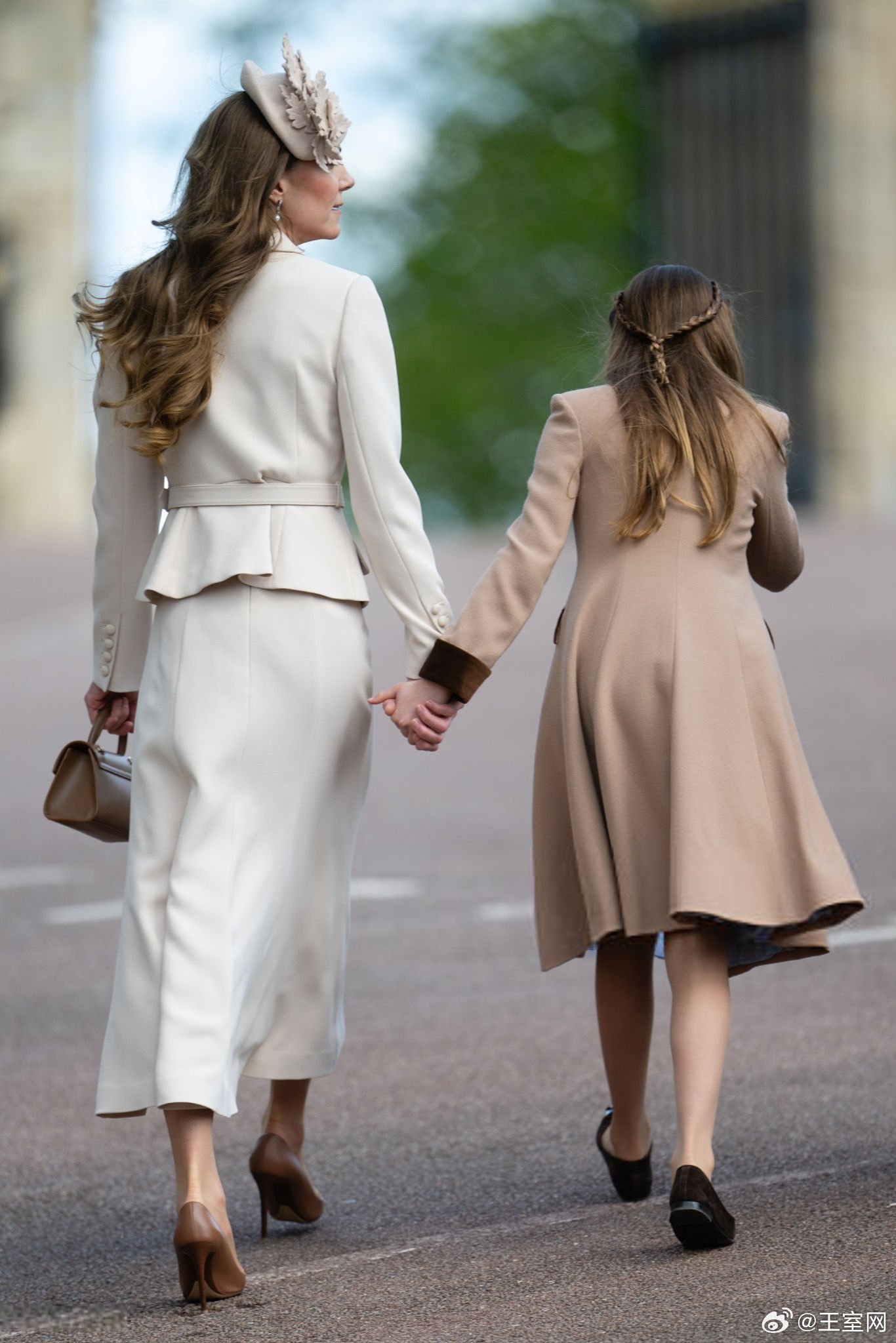 凯特王妃今天凯瑟琳王储妃与她的女儿手牵手离开圣乔治教堂返回温莎城堡,威尔士夏