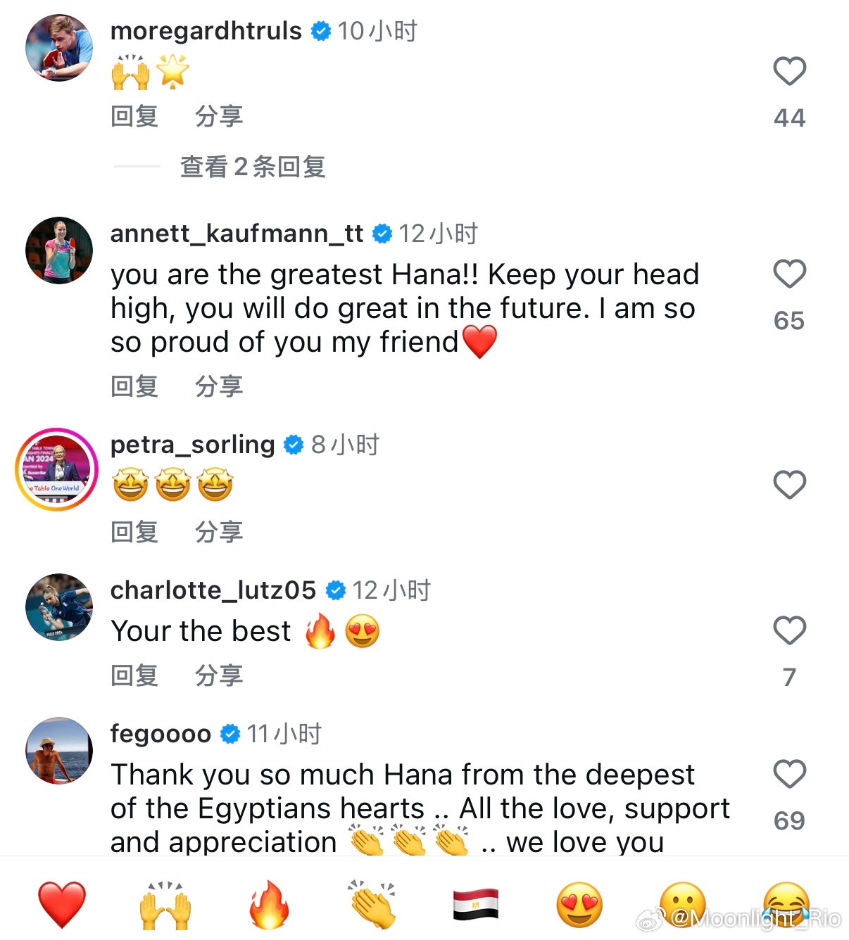 汉娜·高达ins下的评论莫雷加德:🙌🌟(底下评论说人家俩像兄妹🤣不过这也真的是异国很好的哥哥鼓励妹妹了