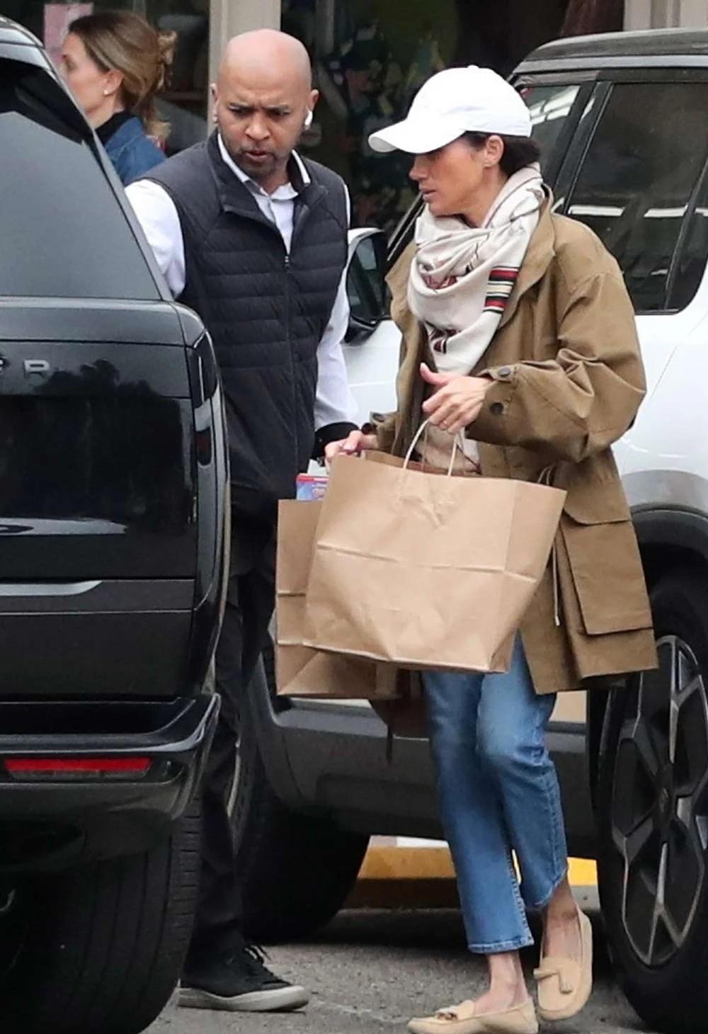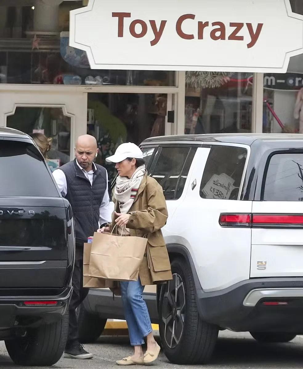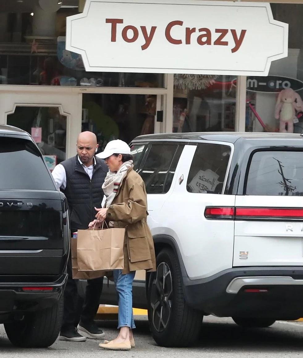 复活节前外出购物,梅根为儿女买儿童玩具。 复活节前夕,梅根被拍到于加利福尼亚州外