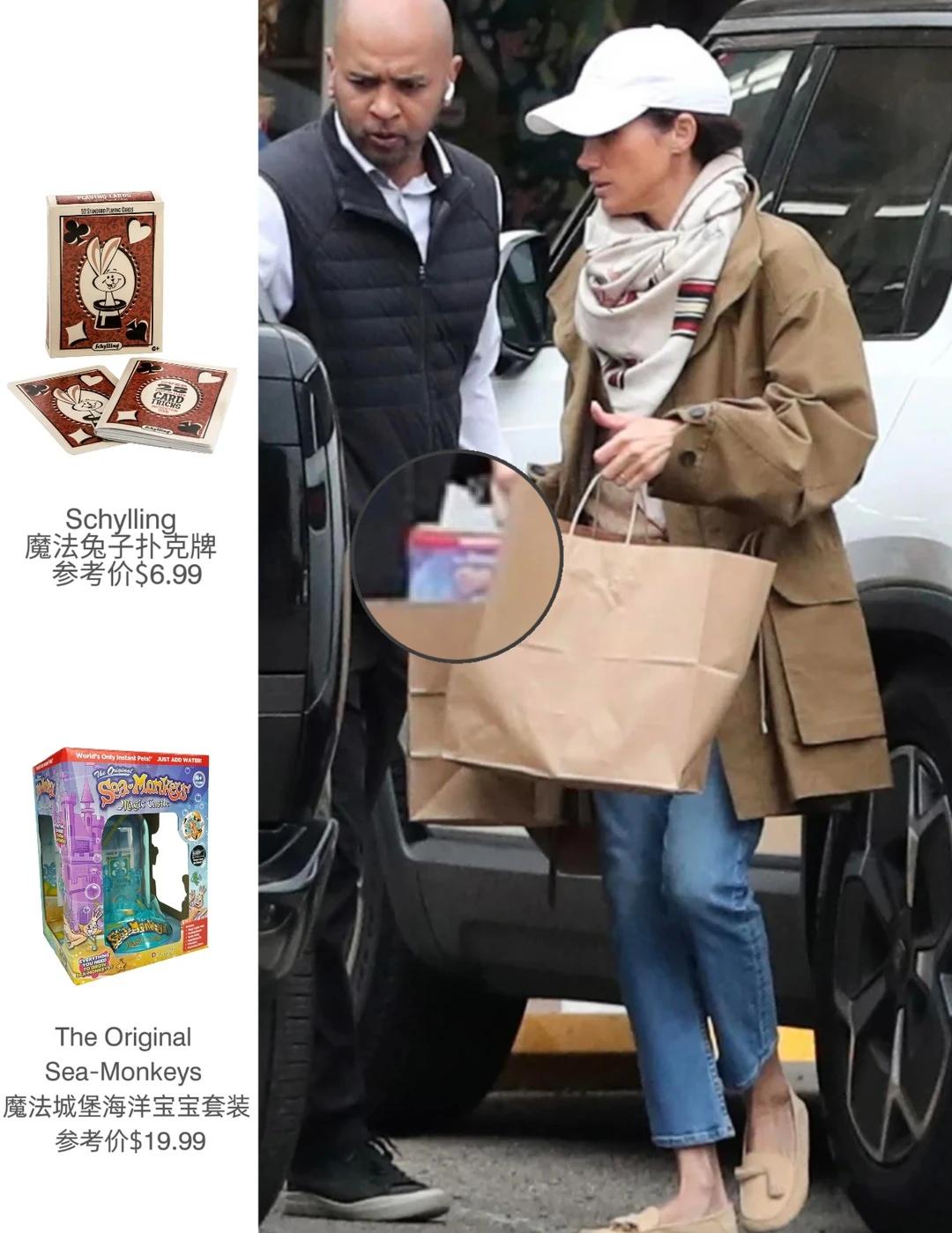 复活节前外出购物,梅根为儿女买儿童玩具。 复活节前夕,梅根被拍到于加利福尼亚州外出购物🛍️,为一对儿女购买儿童玩具,所购买的玩具中有Schylling的Magic Rabbit儿童扑克牌以及海洋宝宝套装(加水即可孵化)……已经在为复活节的家庭时光做准备了~ 私服LOOK依旧走舒适休闲风,Zara的超大廓形风衣搭配的牛仔裤👖以及Loro Piana的豆豆鞋~ 王室时尚 英国王室 王室时尚穿搭