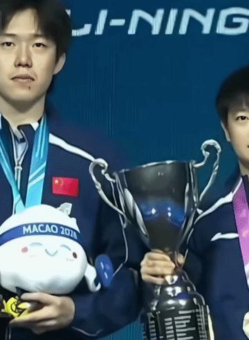 帽呢? 王楚钦惊呆了,看着孙颖莎举着个超大杯上来,惊问:帽呢,咋没帽呢? 孙颖莎被问懵了,直眼盯着王楚钦好一会儿,才回了一句:还不一样。 这是2026年乒乓球世界杯冠军合影时发生的搞笑一幕。 这也难怪,毕竞王楚钦是第一次夺得世界杯男单冠军,第一次捧杯,捧的杯是带帽的,看见孙颖莎捧的杯没有帽,可能担心是不是“帽”掉了,才这样发问。 还好,孙颖莎可是连续拿了三次,捧了三次世界杯女子冠军奖杯,什么场面没见过,自然见怪不怪。 网友帮孙颖莎回了一句,说没帽盖着,那叫“上不封顶”……