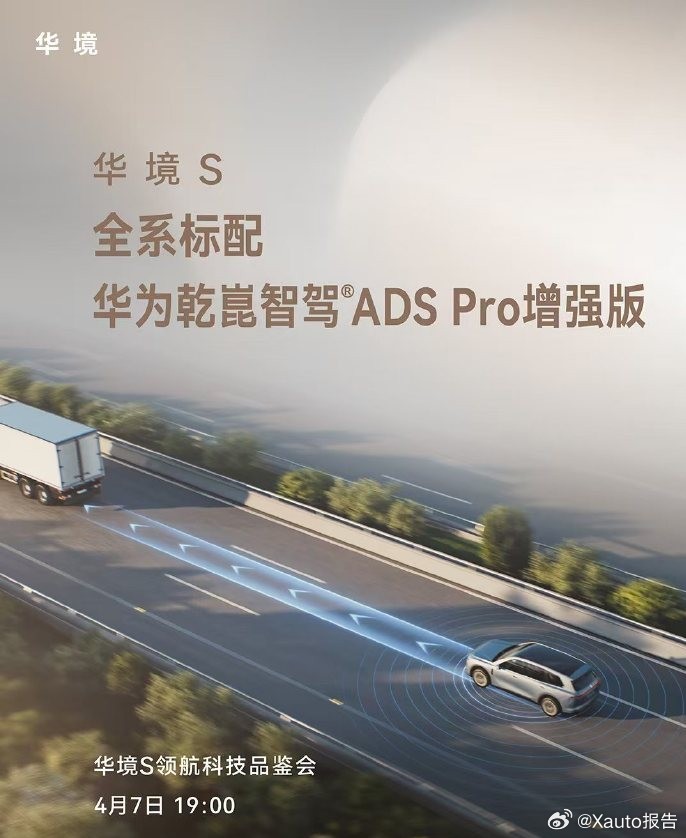 4月7日华境S全球首发华境S定位华为乾崑科技旗舰大六座SUV,搭载鸿蒙座舱、宁德时代电池与ADS Pro增强版智驾,全系标配高阶配置,上市即支持城区领航辅助。新车将于4月7日19点举办领航科技品鉴会并全球首发。华境S华境S全系标配华为乾崑华境S上市即支持城区领航辅助