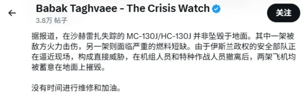 随着信息的不断增加,可以确认美军在昨天的搜救行动中损失了2架MC-130J“突击