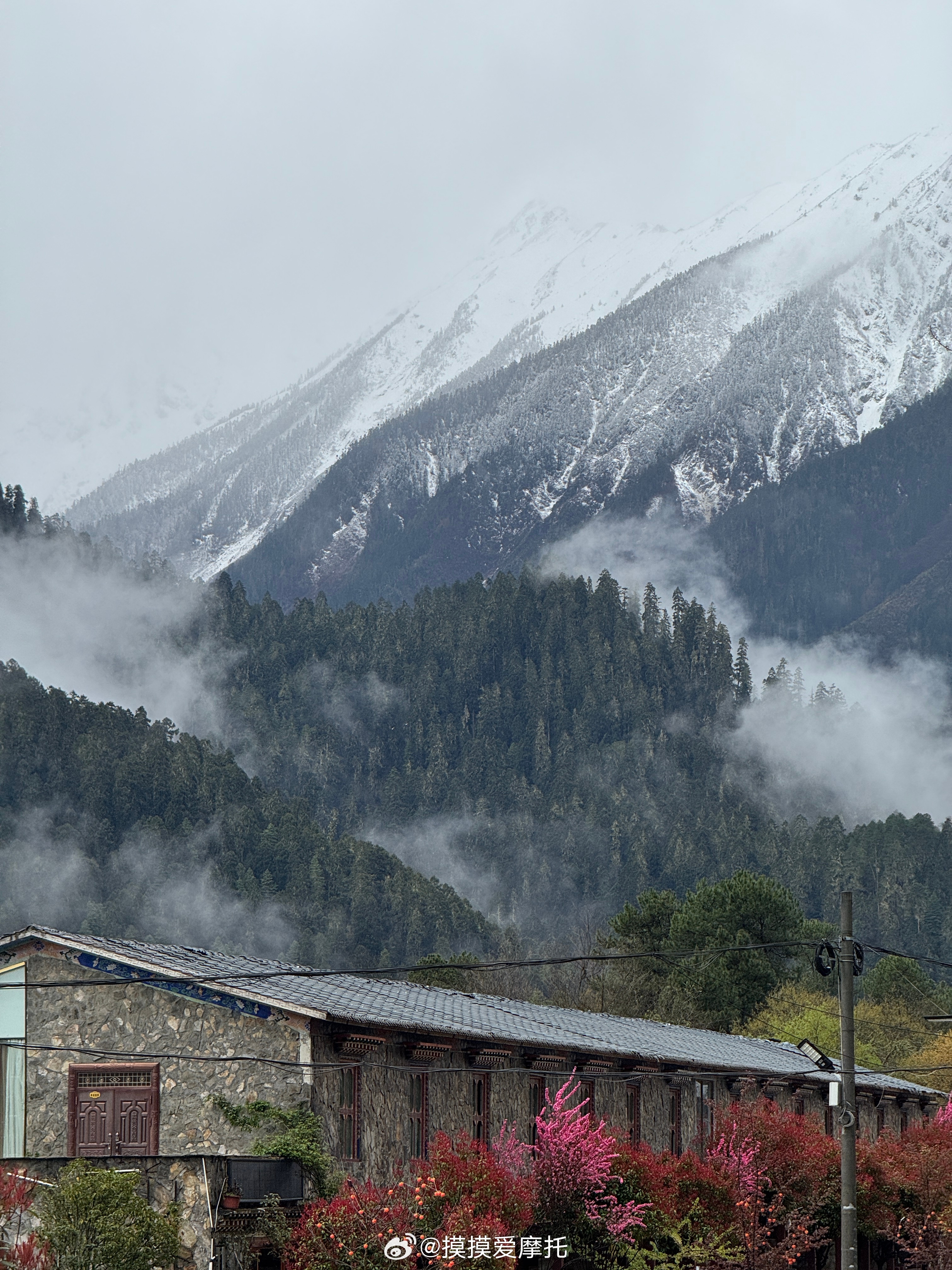 和摸摸去摩旅 昨天下午又下雨了,一路淋到古乡湖,路边随便找了个客栈,今天准备从波密松宗镇走一条新路去昌都,去看看路况如何!