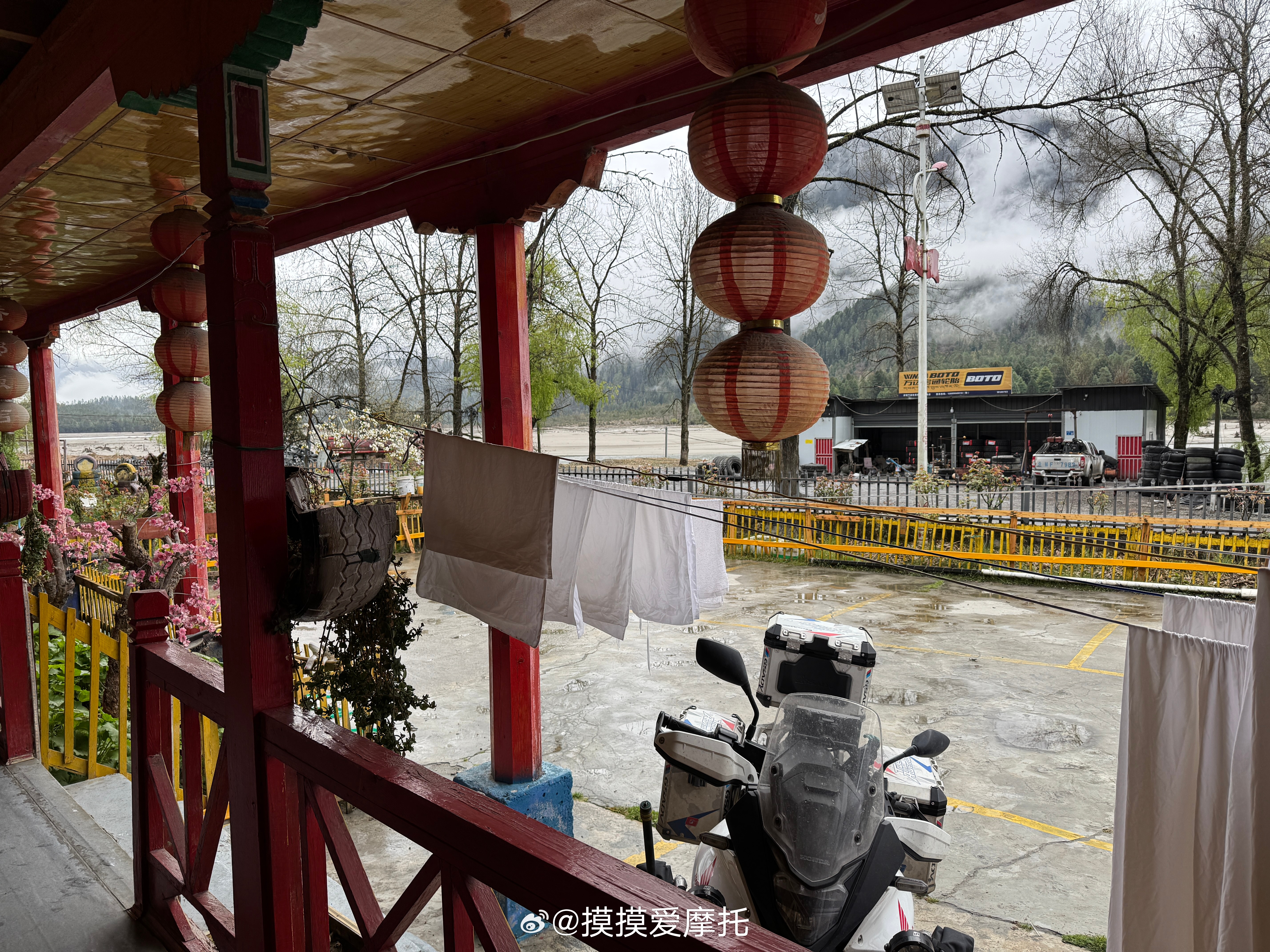 每天早上收拾东西让人很焦虑呀!本田xl750摩旅摩托车机车 林芝·古乡湖景区