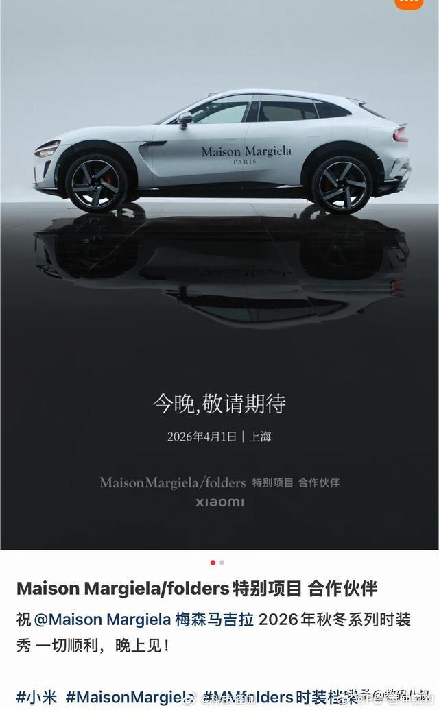 看看小米yu7 这格调小米与Maison Margiela 2026秋冬大秀的合作活动用车,车身上的标识是品牌联名涂装,用于秀场VIP接驳
