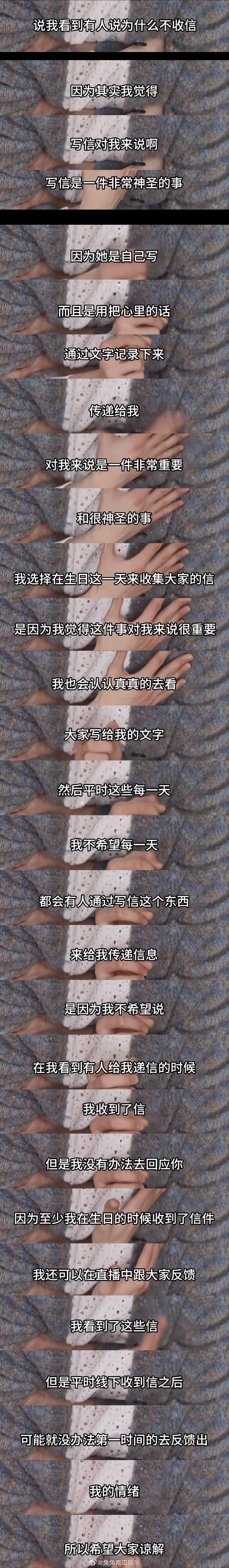 张凌赫曾说不收粉丝的手写信 张凌赫在直播里说“因为我觉得对我来说,写信是一件非常神圣的事,因为它是自己写,把心里的话通过文字记录下来传递给我,对我来说是一件非常重要和神圣的事。我选择在生日这一天来收集大家的信,是因为我觉得这件事对我来说很重要,我也会认认真真去看大家给我写的文字。”真的很真诚了