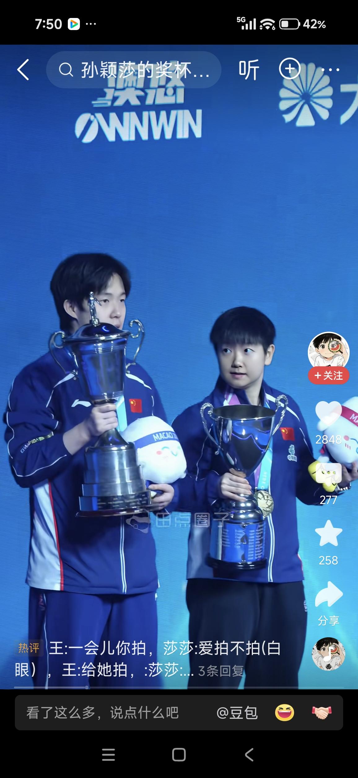 孙颖莎的三连冠。 铁打的孙颖莎,流水的他他他。 2024年夺得世界杯女单冠军的孙颖莎,与她合影的男单冠军是马龙。 2025年夺得世界杯女单冠军的又是孙颖莎,与她合影的男单冠军是雨果。 2026年夺得世界杯女单冠军的还是孙颖莎,与他合影的是大头。 昨晚的澳门成为了孙颖莎的福地,昨晚的她成就了一段属于自己的传奇。