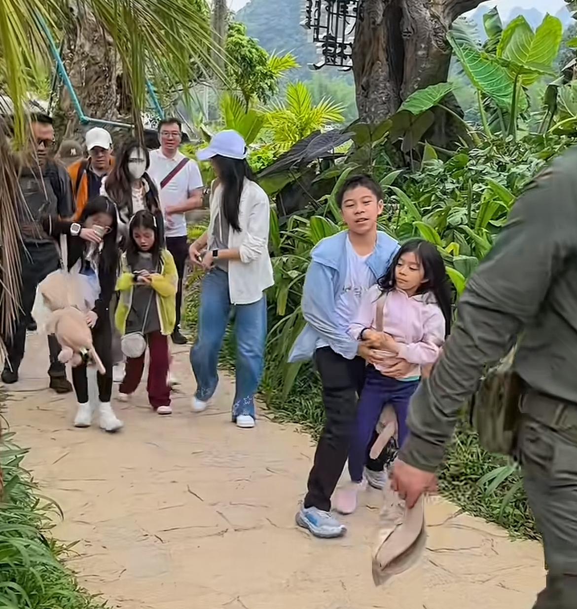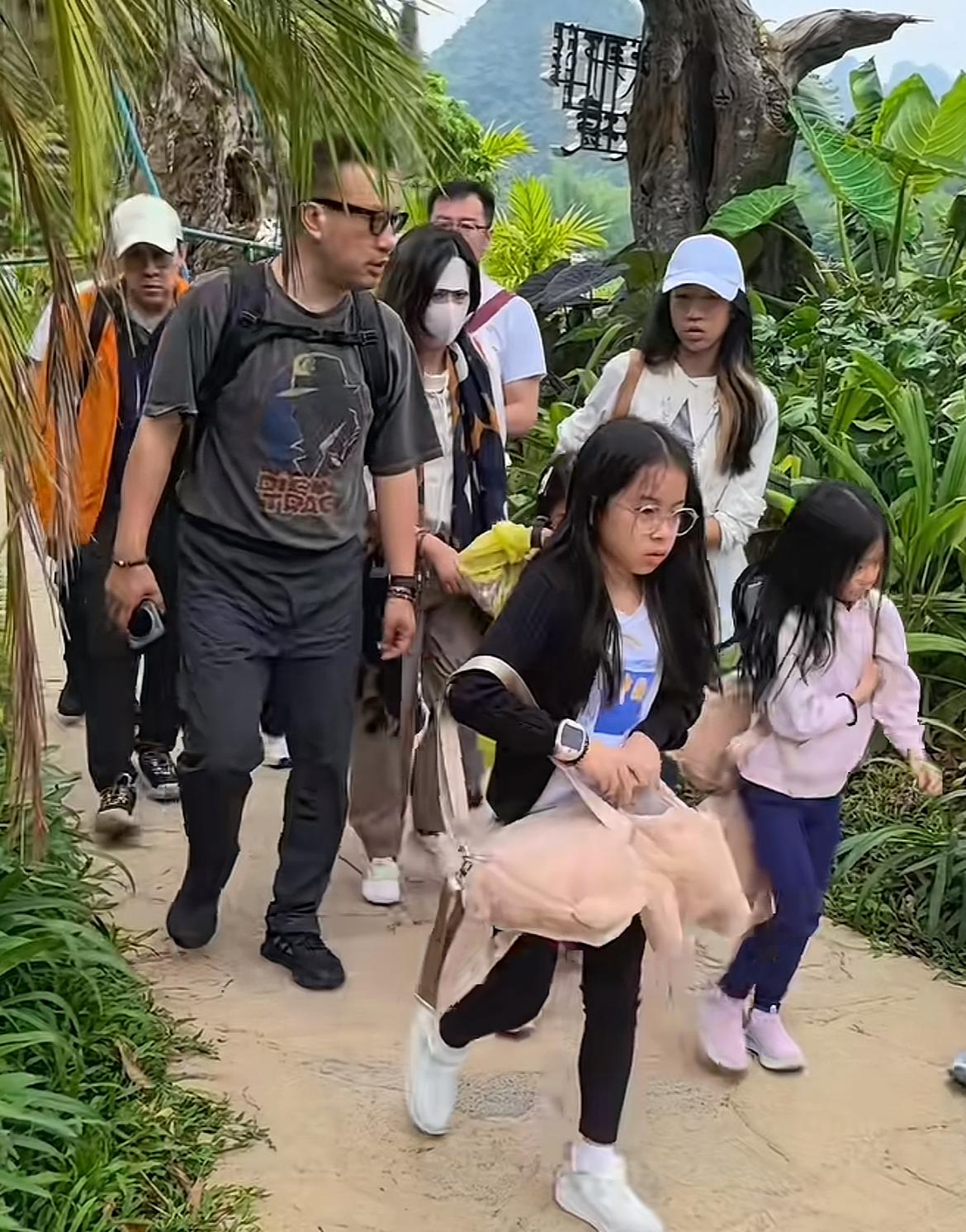 霍启刚生气了,搁我肯定也生气! 4月6号,有网友晒出霍启刚一家现身广西游玩的画面,不过画面中并没有见到郭晶晶,可能是因为拍摄镜头的烟瘾,不过也有网友表示,镜头中戴遮面帽的事郭晶晶,但从走路姿势来分析,可能性不大。 不得不感慨,霍中曦真的是霍家的好长孙。犹记得郭晶晶在早年的采访中就曾透露,霍中曦会照顾妹妹,以前还没有具体的场景,但这次却见到了,可能是因为太累的缘故,妹妹霍中研不想走路,他则抱着妹妹走了一会。 几个月不见,霍中曦已经长成了大小伙,而且妹妹也超级可爱,姐妹俩都背着猴子的背包,且大女儿好似戴着眼镜,看来,富贵人家的孩子也难逃这个“命运”。 可能是因为镜头私密的原因,拍摄者还遭到了霍启刚身边人阻拦,而霍启刚的表情看起来就有点不自然,其实也正常,放在谁都会感到无语,好不容易出来一趟,居然还要被拍摄,能不能好好玩了?