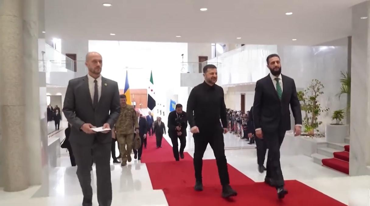 泽连斯基现身大马士革!一摇一晃走下飞机,这波“带货”之旅不简单。 4月5日,大马士革的机场,乌克兰总统泽连斯基脚步略显蹒跚地走下舷梯。虽然步伐还是一如既往的“企鹅步”,但这次他的脸上似乎多了几分自信。 这是他自两国恢复外交关系后,首次踏上叙利亚的土地,迎接他的不仅是隆重的礼遇,还有满屏的“搞钱”机会。 泽连斯基这位“顶级推销员”心里装的可都是生意,这次访问的核心KPI非常明确:推销乌克兰的“反无人机神器”和粮食。 叙利亚现在最头疼的就是怎么防住伊朗的无人机,而乌克兰恰恰在实战中练就了一身“防空金钟罩”。 泽连斯基这次来,就是要告诉沙拉总统:别犹豫,买它!这可是经过实战检验的“保命装备”。 这趟行程还拉上了土耳其当“僚机”,泽连斯基访叙前先去了安卡拉,见完埃尔多安转头就来大马士革,甚至还搞了个三方外长会。 这一套“连招”下来,明显是想在中东地区编织一张属于自己的安全与经济网络。 从沙特到卡塔尔,再到现在的叙利亚,乌克兰的生意是越做越红火,连粮食都成了硬通货。 看着泽连斯基在镜头前那一摇一晃的身影,这哪里是去外交访问,分明是去中东“扫货”加“带货”的。 对于叙利亚来说,面对地区复杂的局势,乌克兰的经验确实有吸引力,而对于乌克兰来说,这不仅是外交突破,更是实打实的“回血”之旅。 这一波,泽连斯基显然是有备而来,不仅要刷存在感,更要拿订单。