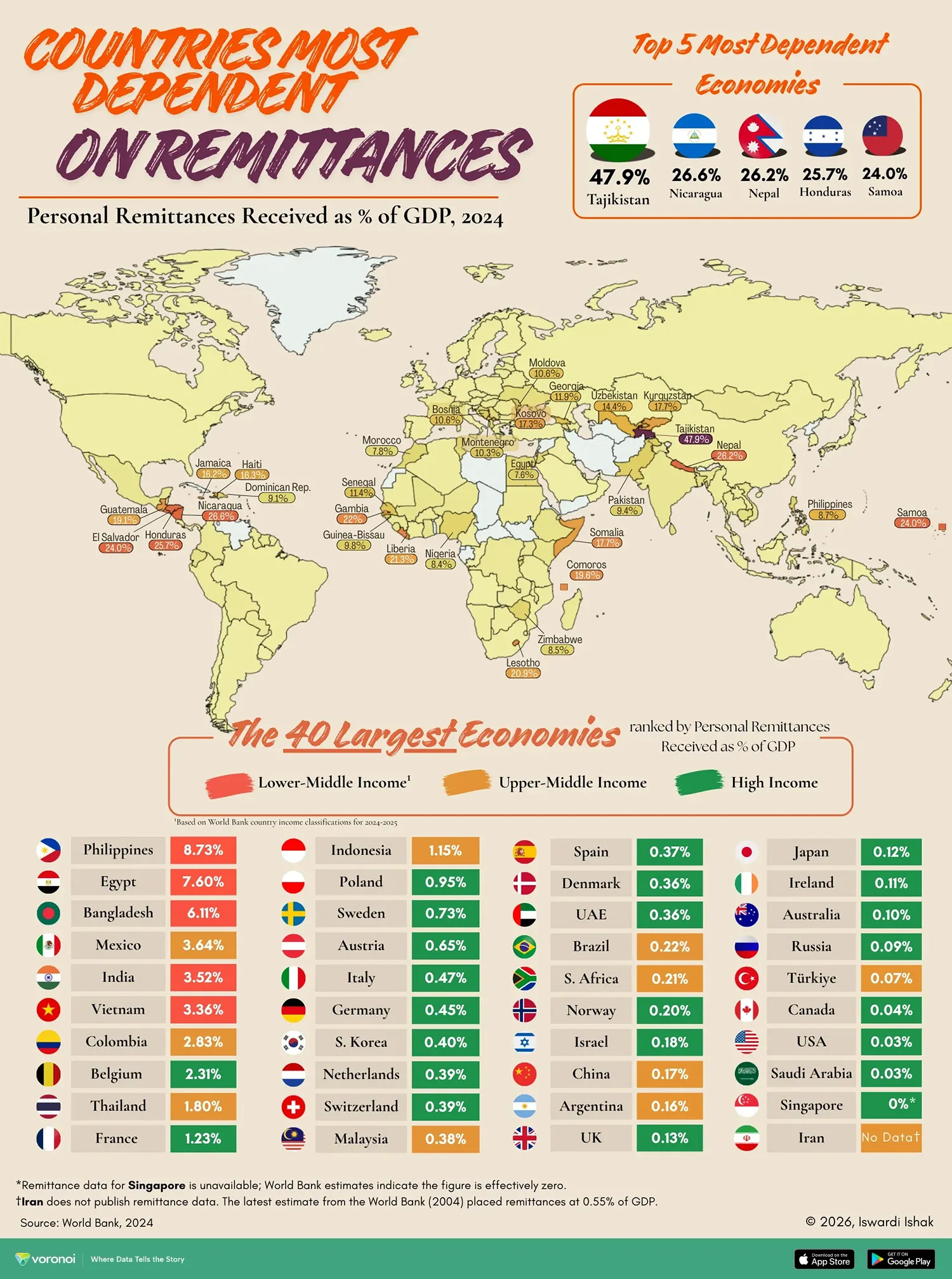 汇款与GDP比例最高的经济体