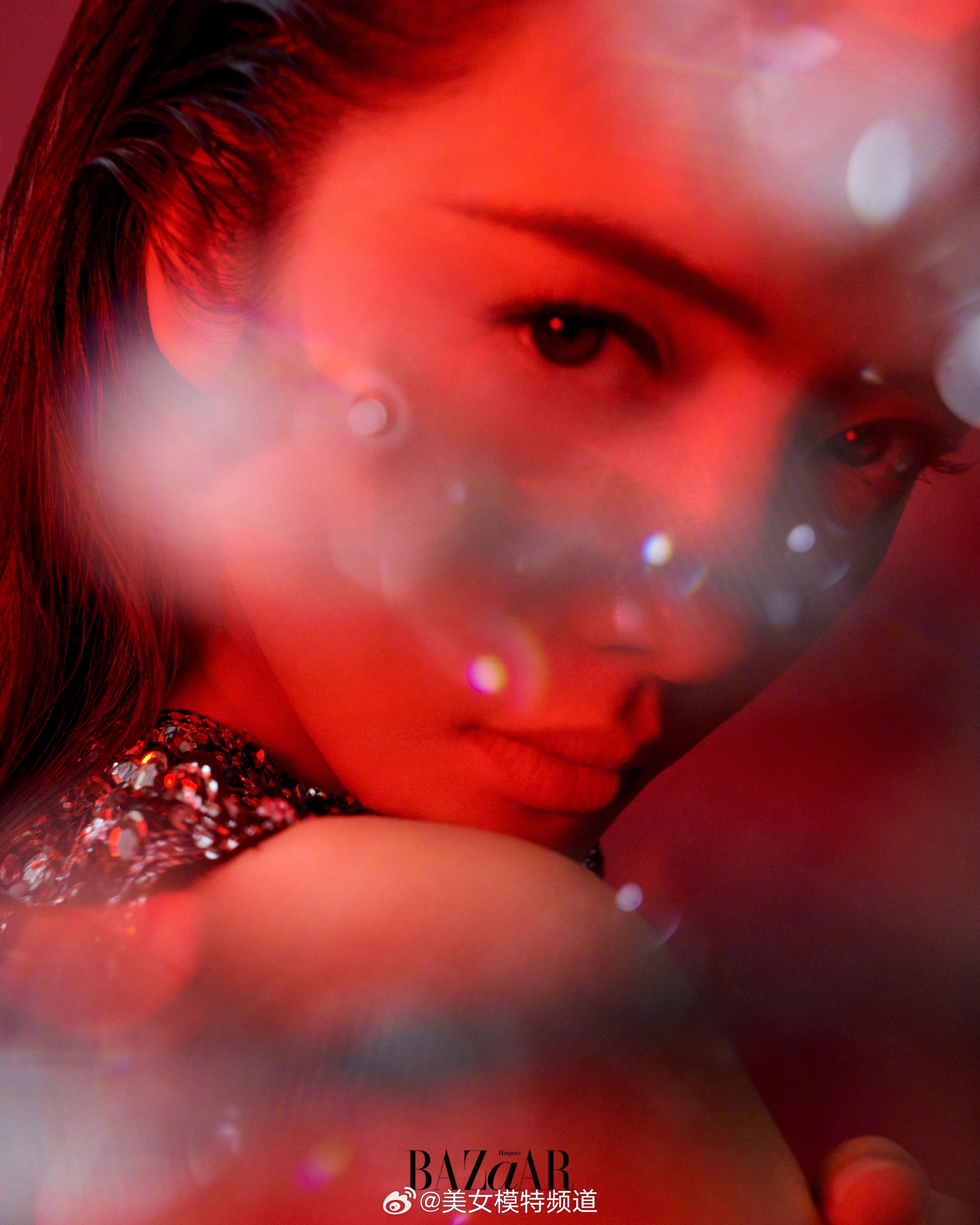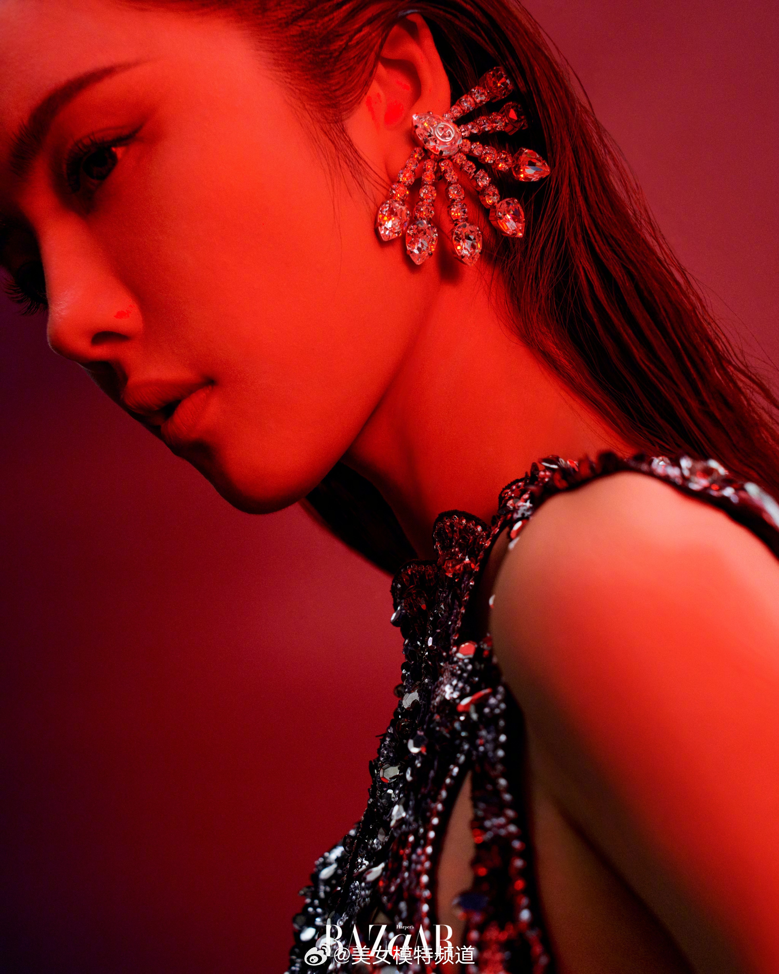 蔡文静芭莎黑月光露背湿发大片