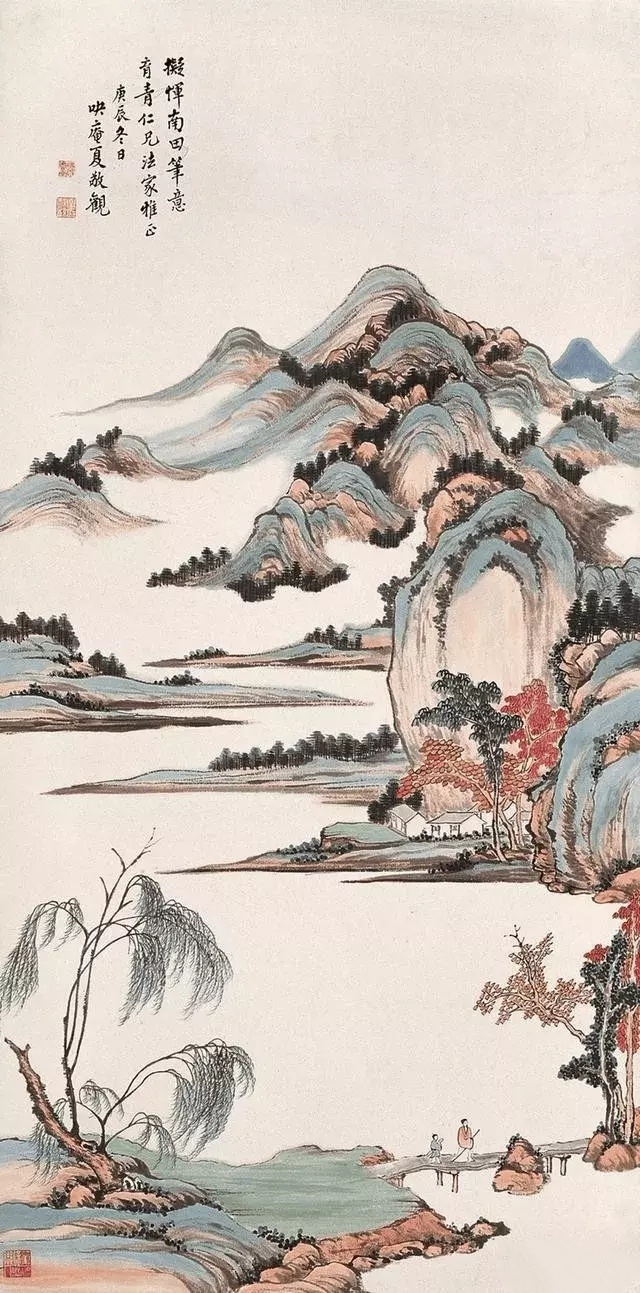 夏敬观山水画。夏敬观(1875年-1953年),近代江西派词人、画家。其山水作品,气清而质朴,骨苍而神腴。1894即光绪二十年,夏敬观中举,那时候就以诗词名播南北。1902年受两江总督张之洞之邀办两江师范学堂,任江苏提学使。1907年任江苏提学使兼上海复旦、中国公学等校监督。光绪三十五年(1909),夏敬观辞官。1911年武昌起义后,颇为支持新政,率先剪辫。1919年任浙江省教育厅长,1924年辞职闲居上海,筑室康家桥,专心从事绘画与著述。晚年主攻山水,兼及花卉。这就是中国风 遇见艺术
