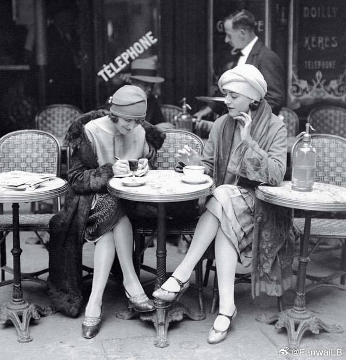 1925年,巴黎,露台上,女人们正在喝咖啡。