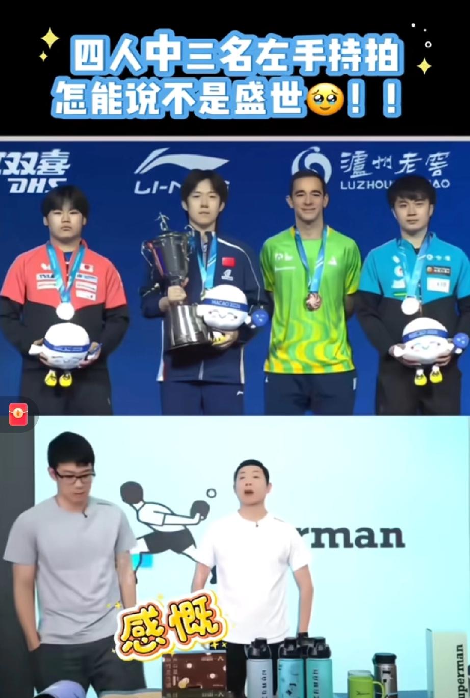 许昕羡慕了!! 澳门世界杯颁奖台上,王楚钦,松岛辉空,林昀儒都是左手,只有雨果是