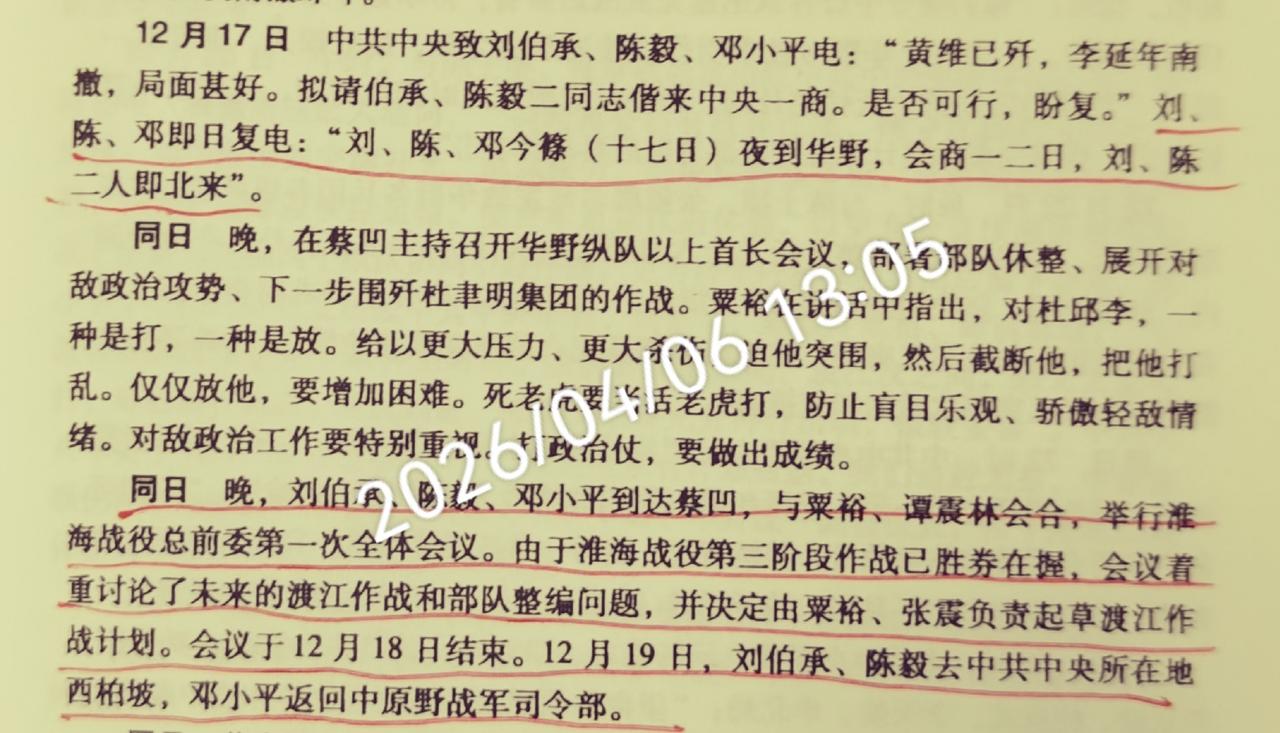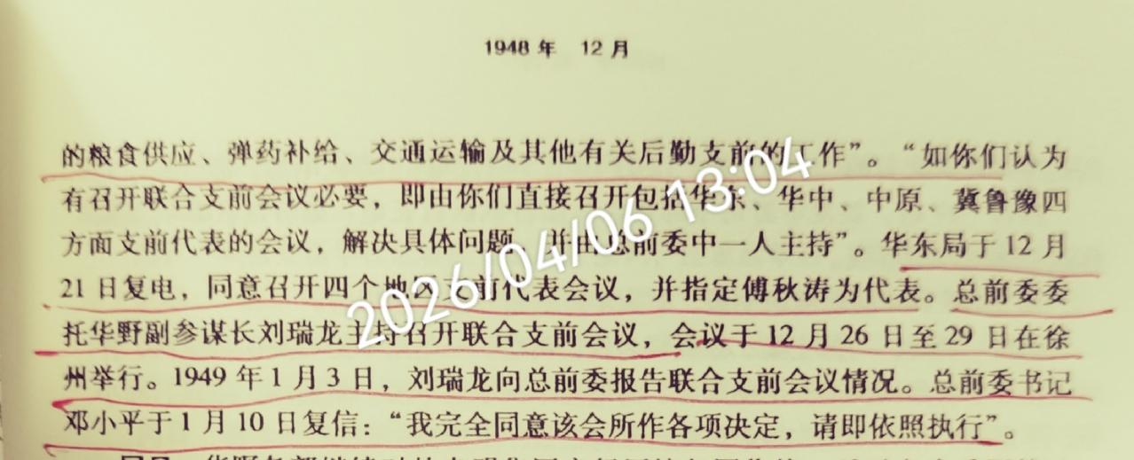 《粟裕年谱》,是否记录淮海战役总前委? 朱楹,是粟裕的秘书,也是《粟裕年谱》的主要编纂者。 《粟裕年谱》中,如实记录了淮海战役总前委的活动:一是淮海战役总前委第一次会议的召开;二是淮海战役中联合支前会议的召开。 同时,《粟裕年谱》也详实记录了淮海战役总前委转为渡江战役总前委后所开展的各项工作。 从中,可以看出:总前委也是一个从无到有、从弱到强的不断发展的事物、组织,它在解放战争中发挥了重要作用。