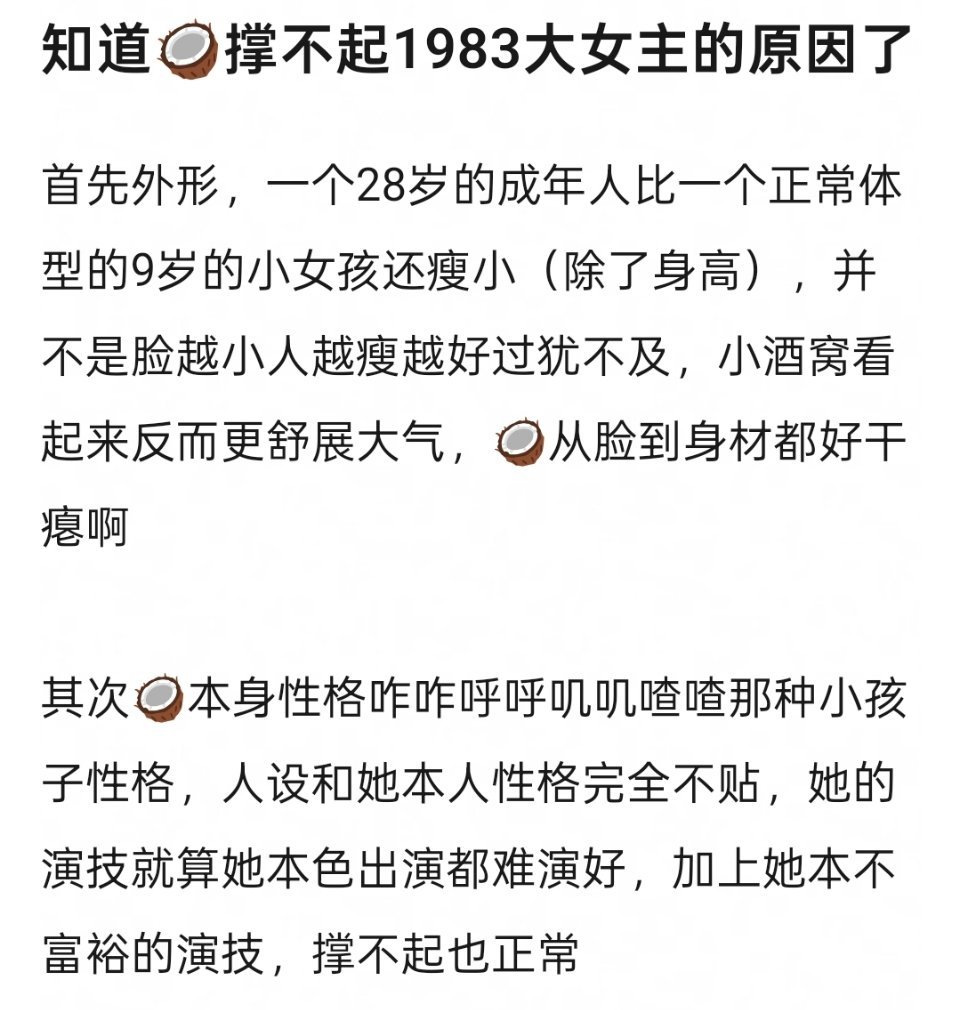 周也撑不起来1983的女主是因为外形和性格不贴角色吗