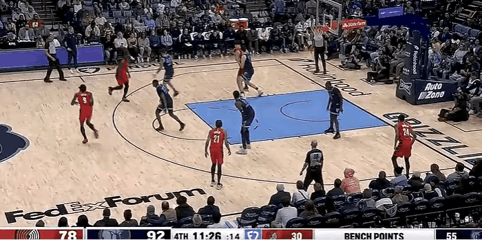 申京的这个低位背身单打真的很一般,脚步感觉太笨拙了,速度也很慢,全靠经验和力量了