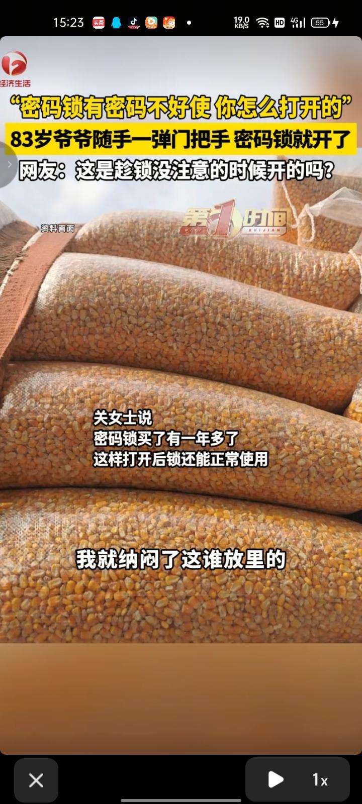 4月5日,辽宁本溪。网友发视频称,密码锁使劲拽却纹丝不动,有密码也不好使,爷爷随手一弹门把手,密码锁就开了。 视频拍摄者关女士表示,密码锁买了一年多了,这样打开锁后能正常使用。屋里放了几袋苞米,是爷爷放的。她想不明白,爷爷不知道密码是怎么放苞米进去的,才有了这一幕。