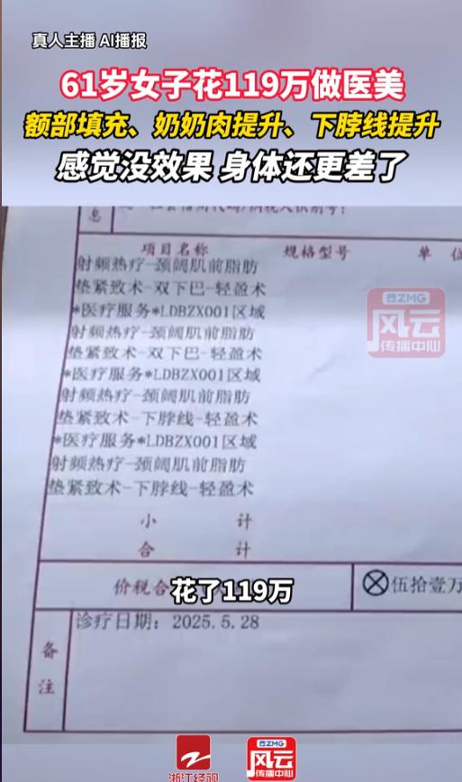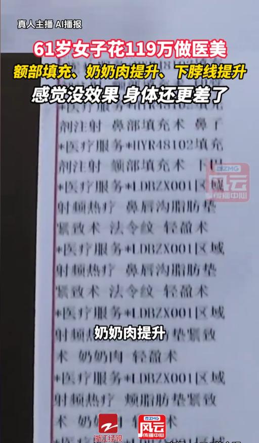 “一百多万白花了?”2025年,浙江金华,一六旬女子在网友介绍下,去了一家美容院做了医美,一年时间里,累计做了三次,花了119万,可是她却感觉没什么效果,反而身体还更差了。后来,家里人收到了一条来自警方的消息! 爱美之心人皆有之,可近年来,天价医美事件层出不穷。花了钱,却没能变美,有的甚至还变丑了,这与诈骗何异? 据媒体报道,雷大姐今年61了,平日里有点小抑郁,睡眠也不好,整个人看上去很显老气,也没什么活力。为了让自己的生活更阳光,她经常上网冲浪,就这么认识了一个网友。 刚开始,雷大姐经常跟对方学习,怎么样能更正能量一点。慢慢的,两个人也熟了,对方给她推荐了一家杭州的医美机构,说是做一些项目,能让她更年轻,也快乐。 在这家机构,雷大姐一共做了三次项目,包括额部填充、奶奶肉提升、下脖线提升等,还有一些射频热疗之类的,都是注射类的项目,并没有进行手术。这三次下来,花了119万。 这之后,派出所给她的家人发了消息,提醒老人可能遭受诈骗,家里人才知道雷大姐巨款医美的事。她也觉得自己并没有什么提升,而且那位网友也把她拉黑了。医美机构那边却说,每个人效果理解并不相同,收费也是明码标价,全凭自愿。他们顶多可以给退20万的费用。 本是为了让自己活的更好,可最终却白白扔了钱,反倒更加难过了,不由得让人唏嘘。医美这个东西,并不是万能的,还请大家不要迷信,更不要盲目追求,捂好自己的钱袋子才是要紧事! 信息来源:《61岁女子花119万做医美,额部填充、奶奶肉提升、下脖线提升,感觉没效果,身体还更差了。