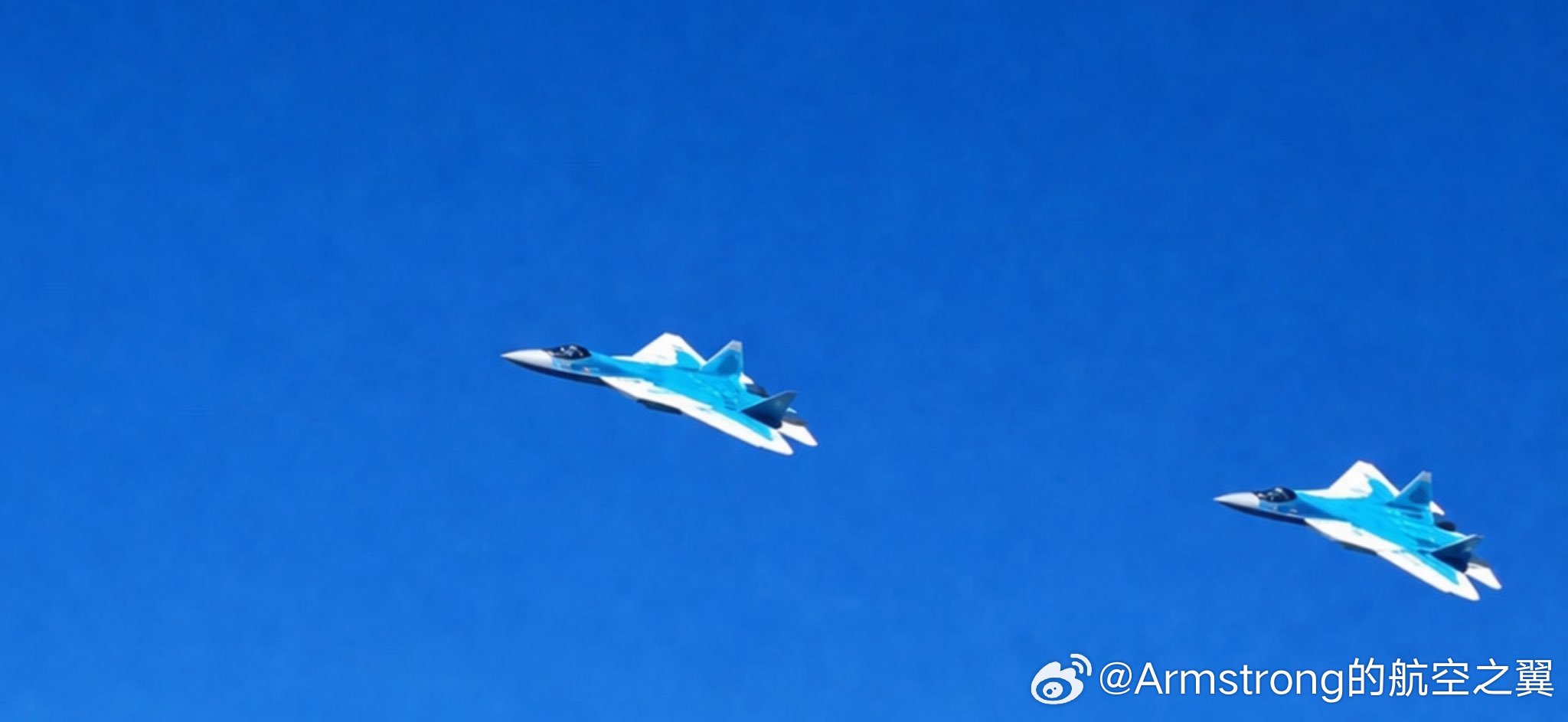 烽火问鼎计划 阿尔及利亚苏-57E原来采用的是大白鲨涂装,苏-57原型机曾经测试过,通过对比强烈的深浅涂色来隐藏飞机轮廓。