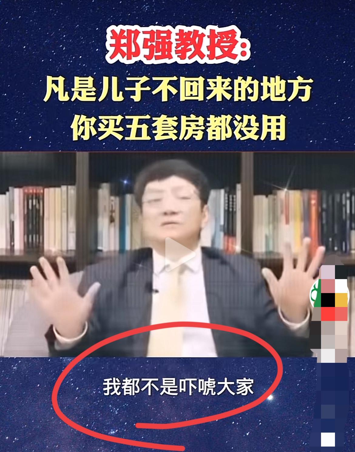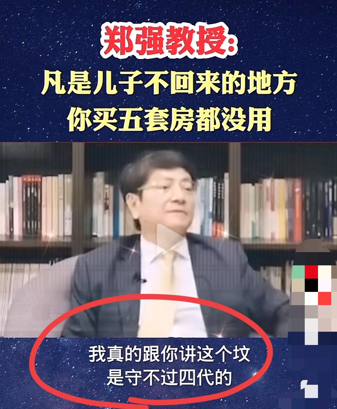 清明节儿子不回来地方,你买五套房也没用!! 又是一年清明到,郑强教授的这番话,含金量还在上升。 今年的清明,你回家扫墓祭祖了吗? 郑强教授在一个采访中就谈到了这个问题。 他说,祖坟是守不过四代的,这可不是吓唬你。 你,你儿子这一代,可能好点。 但之后呢,估计祖坟在哪里都找不到了。 儿子不回来的地方,你就是买五套房,有何用?? 不得不说,随着城市化的进程,年轻人都到了大城市奋斗; 老一辈的离开,农村也逐渐空心化,父辈对于家乡和土地的感情; 在儿子,孙子之后,也逐渐淡化了。 他们对于家乡的感念,也能仅仅是跟随父母过年回老家才有一点感触; 之后他们的孩子估计就没有什么感受了。 这是一种非常普遍的现象,老家在农村,还能回得去吗?