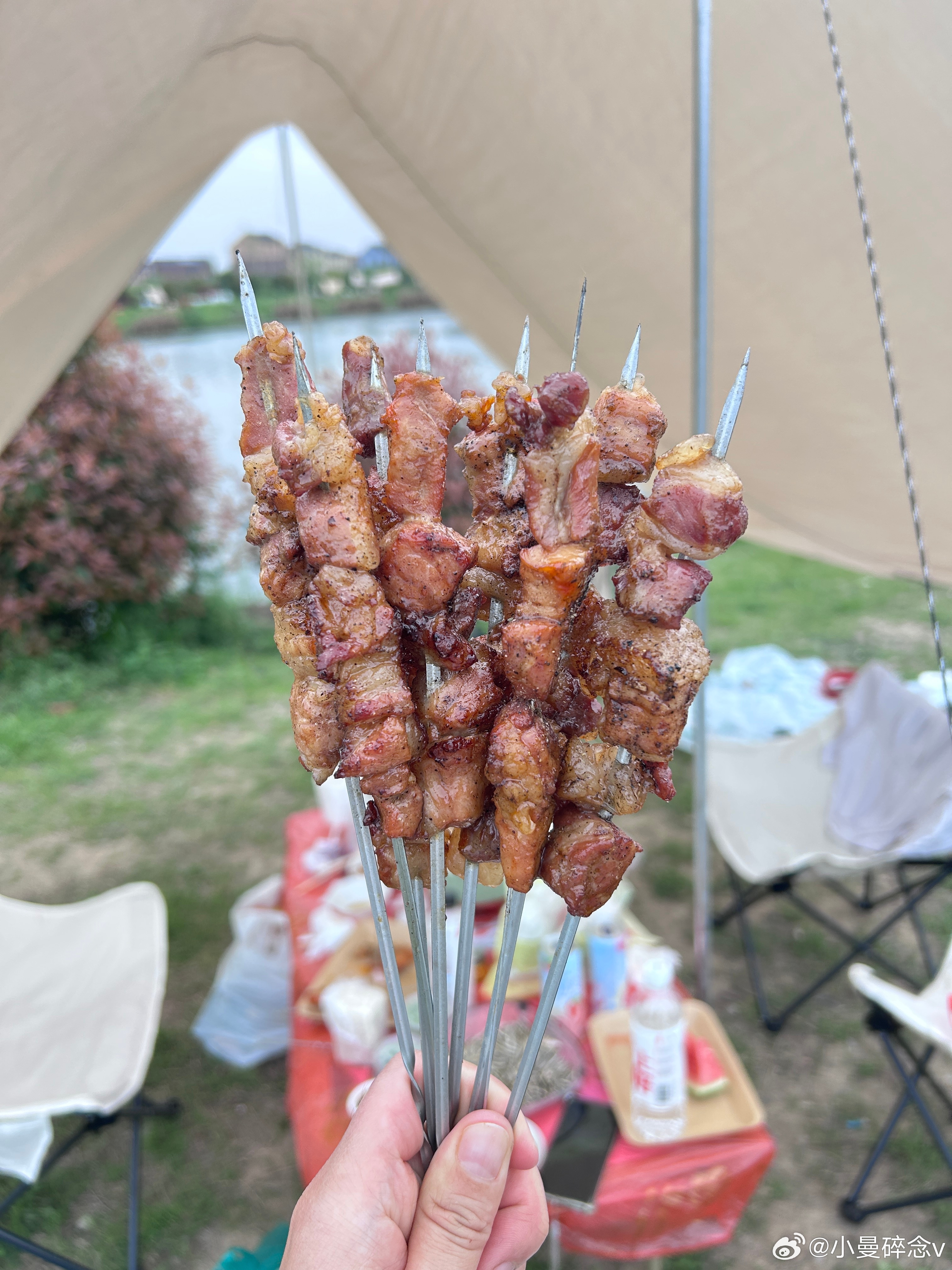露营烧烤吃到撑了,猪队友负责烤还挺靠谱,技术再练练可以去开铺了假期结束🔚带火莫