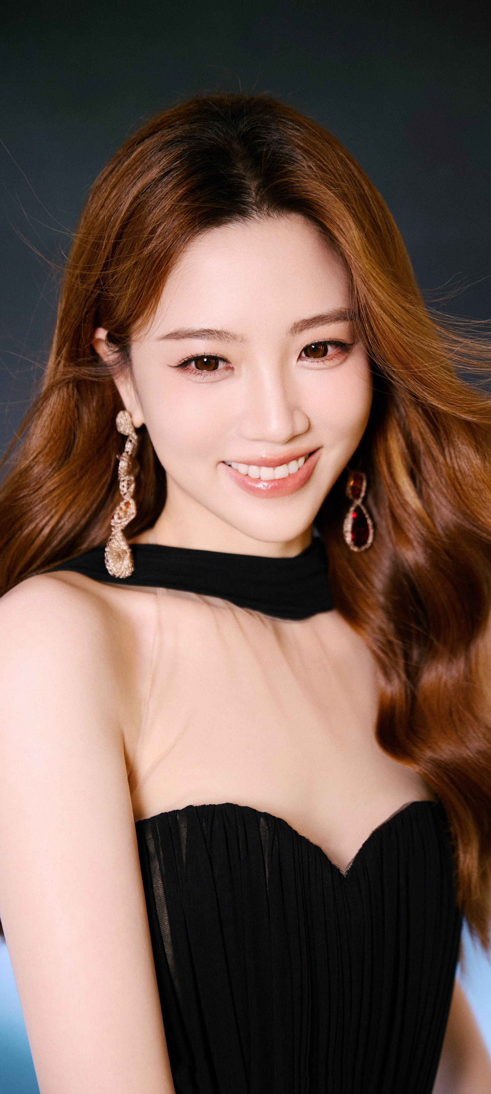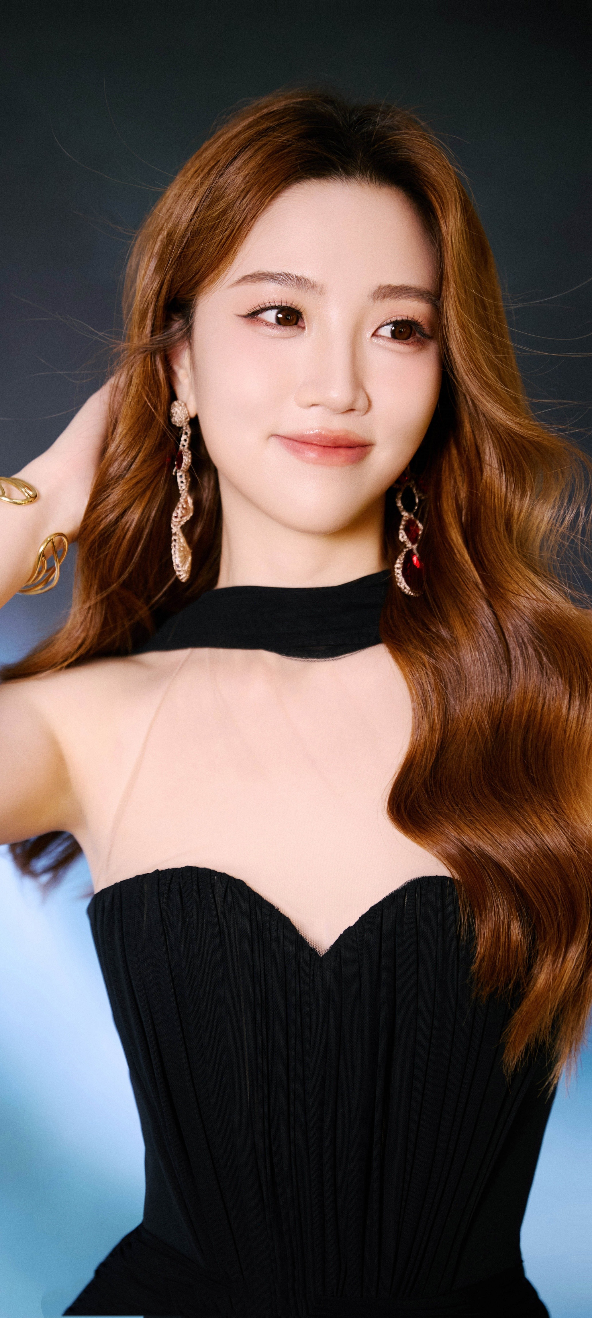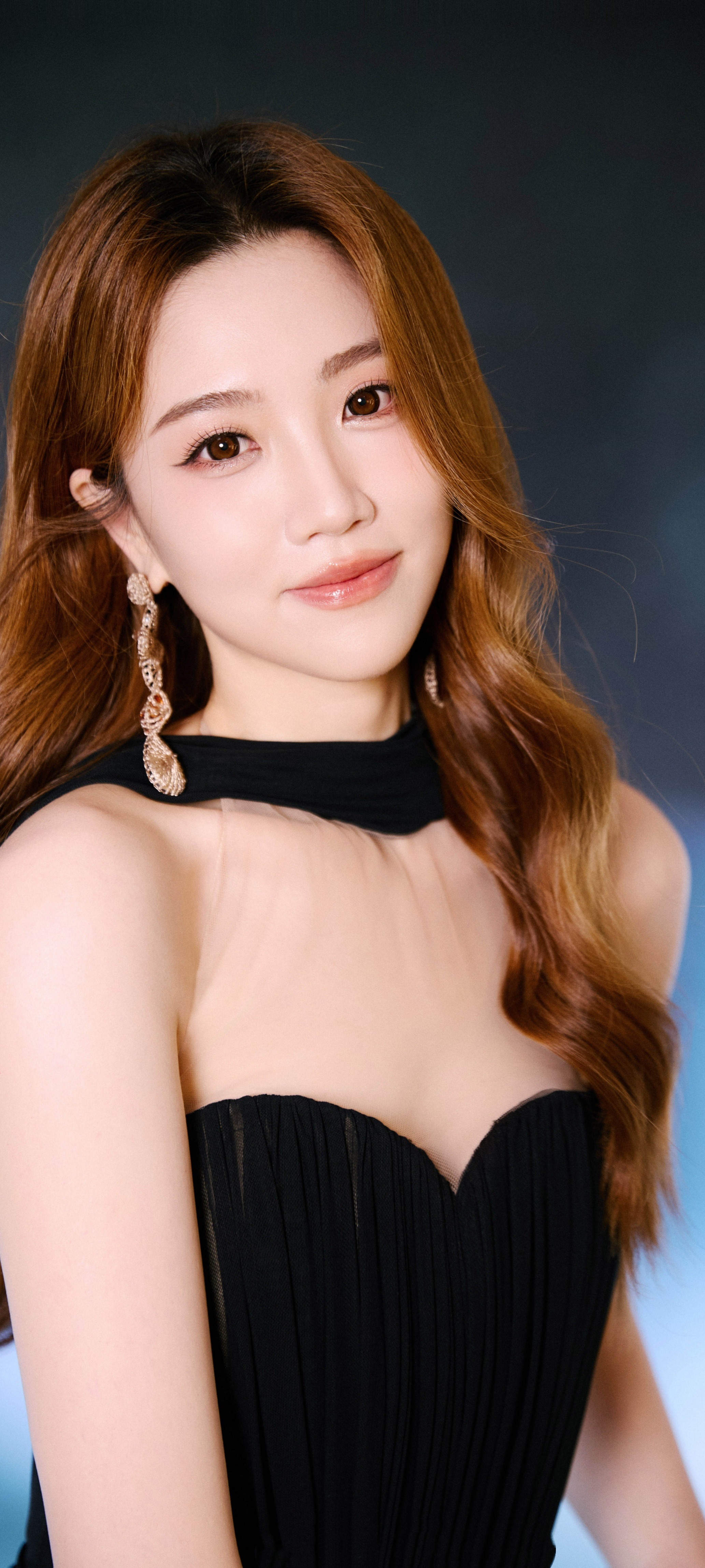 张纯烨优雅穿搭壁纸上线,卷发朱唇,黑色抹胸挂脖连体裤修长线条。张纯烨