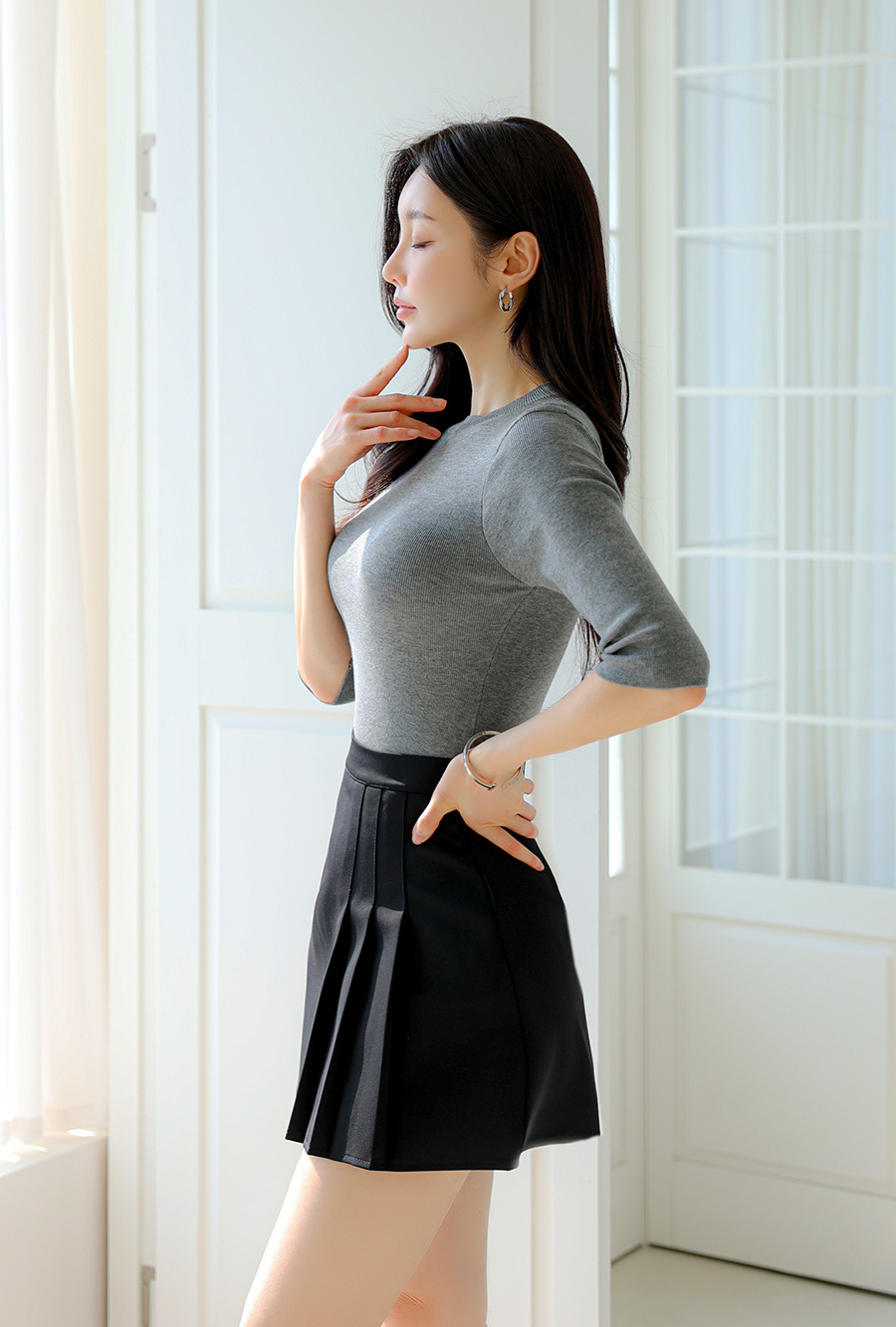 不同风格的孙允珠你喜欢吗?优雅自信穿搭分享高清全屏美图壁纸分享露肩上衣穿搭分